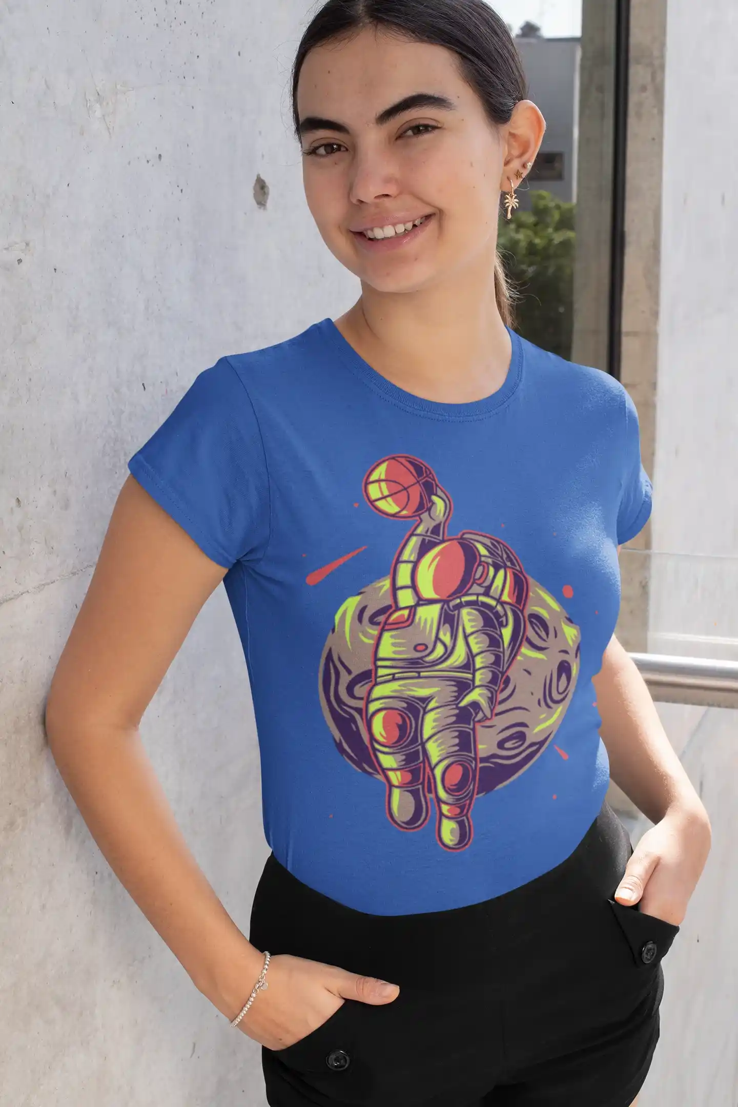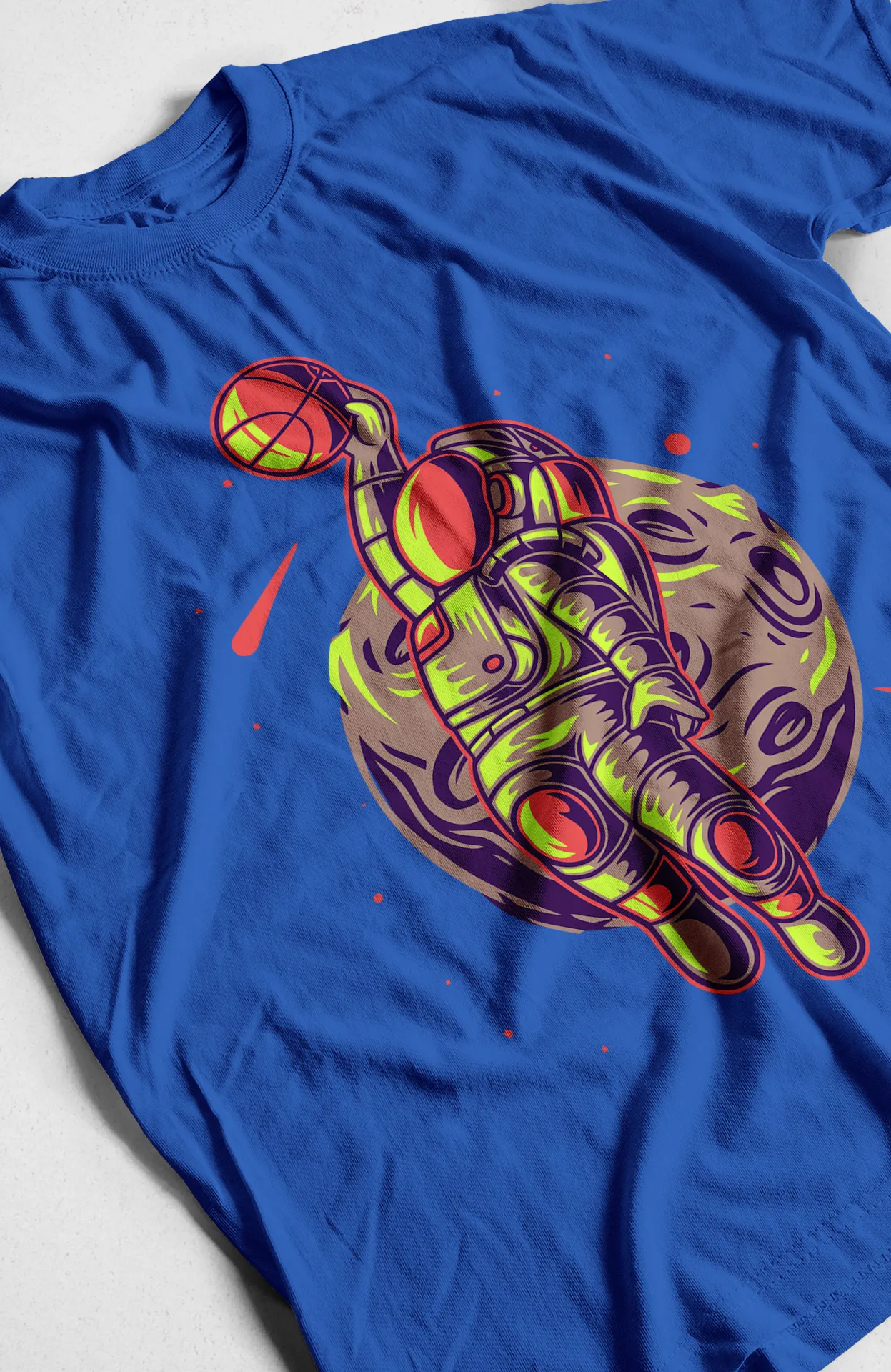 Esta camiseta es la fusión perfecta entre el deporte, la ciencia ficción y el humor. Con un diseño original y divertido, presenta a un astronauta en plena acción, encestando un balón de baloncesto sobre la superficie lunar. El estampado, lleno de colores vibrantes y un estilo de ilustración único, captura la imaginación y añade un toque lúdico a cualquier atuendo. Es la prenda ideal para quienes aman la exploración espacial, el baloncesto o simplemente buscan una camiseta que los haga destacar. Su diseño es una oda a la creatividad y a la idea de que no hay límites, ni siquiera en el espacio exterior.