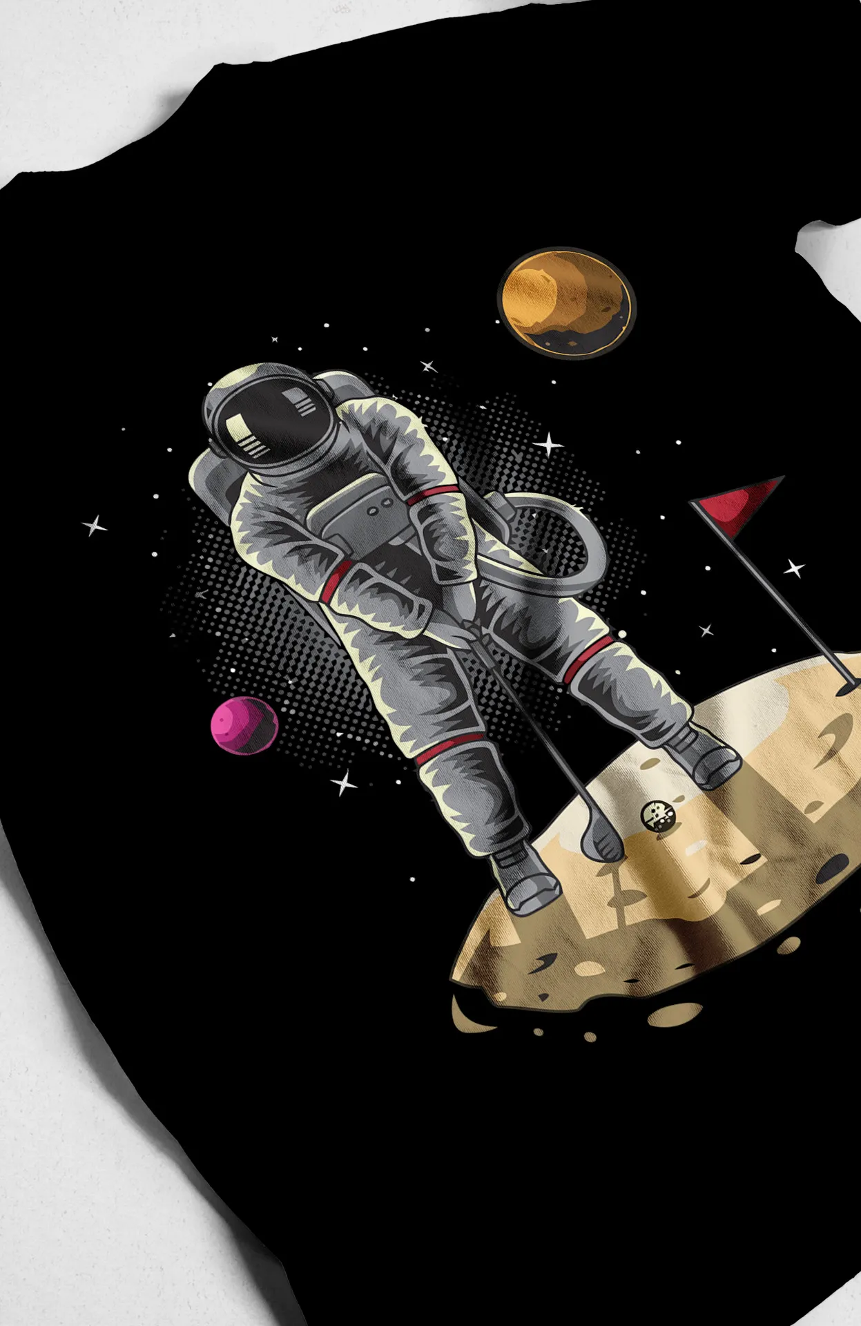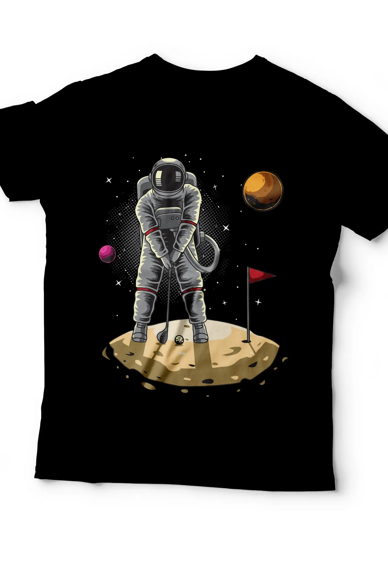 ¡Consigue tu camiseta Astronauta Golf Espacial hoy mismo! Añádela a tu carrito y prepárate para un estilo que es de otro mundo. ¡Tu próximo hoyo en uno te espera!