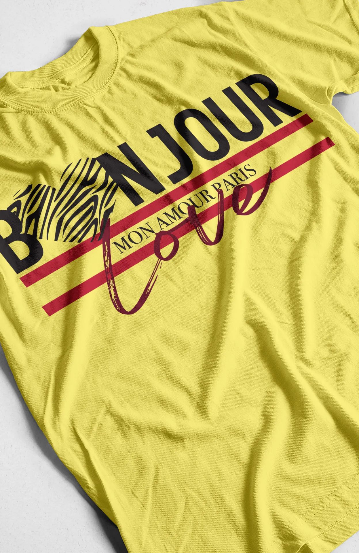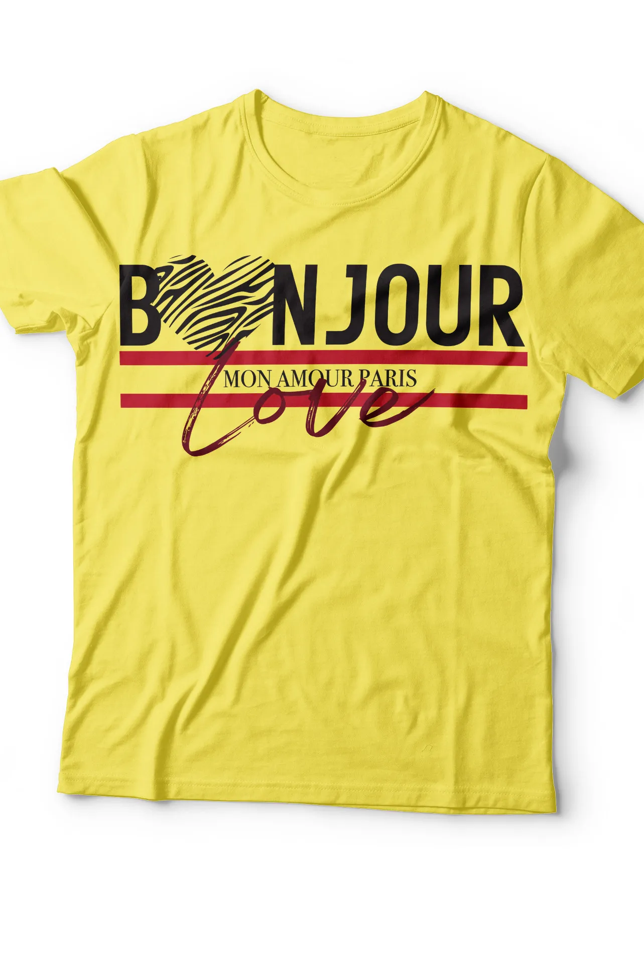 | Detalles | Estampado frontal con la frase “Bonjour Love” y tipografía parisina |