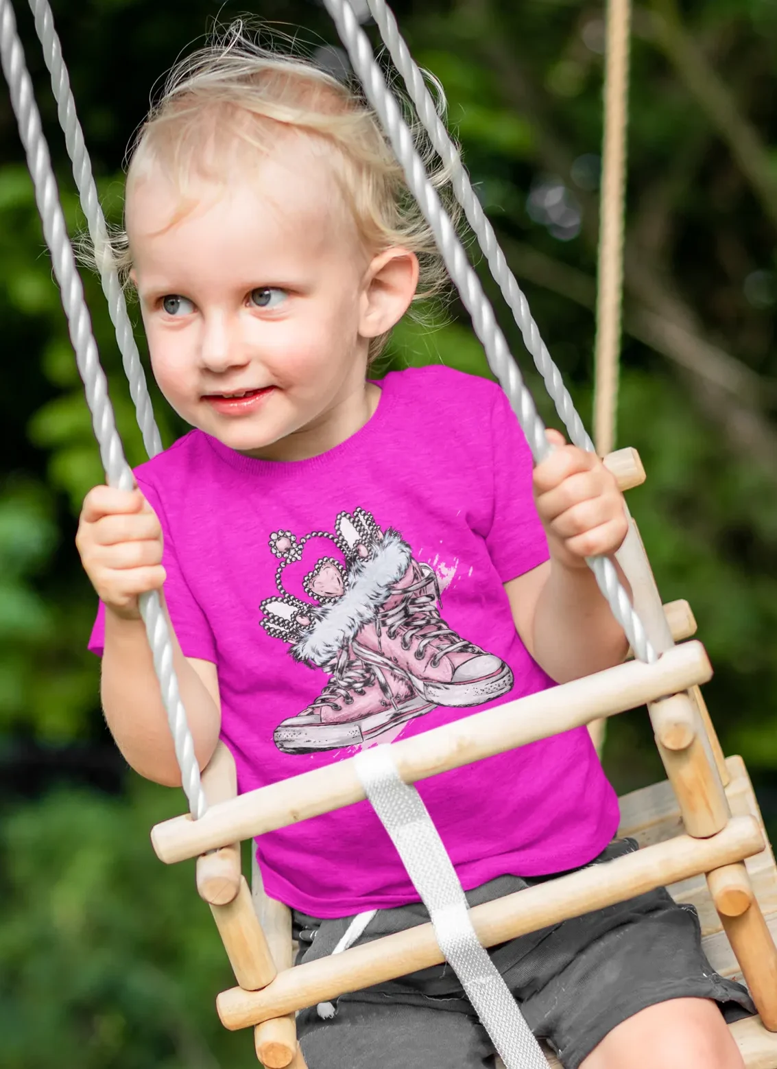 Nuestra camiseta 'Botas con Corona' es mucho más que una simple prenda: es una invitación a la distinción. Diseñada para los pequeños soñadores, su estampado de botas con detalles brillantes y una corona elegante es una declaración de estilo audaz y divertido. La combinación de elementos de realeza con un diseño moderno la convierte en una pieza única que destacará en cualquier lugar.