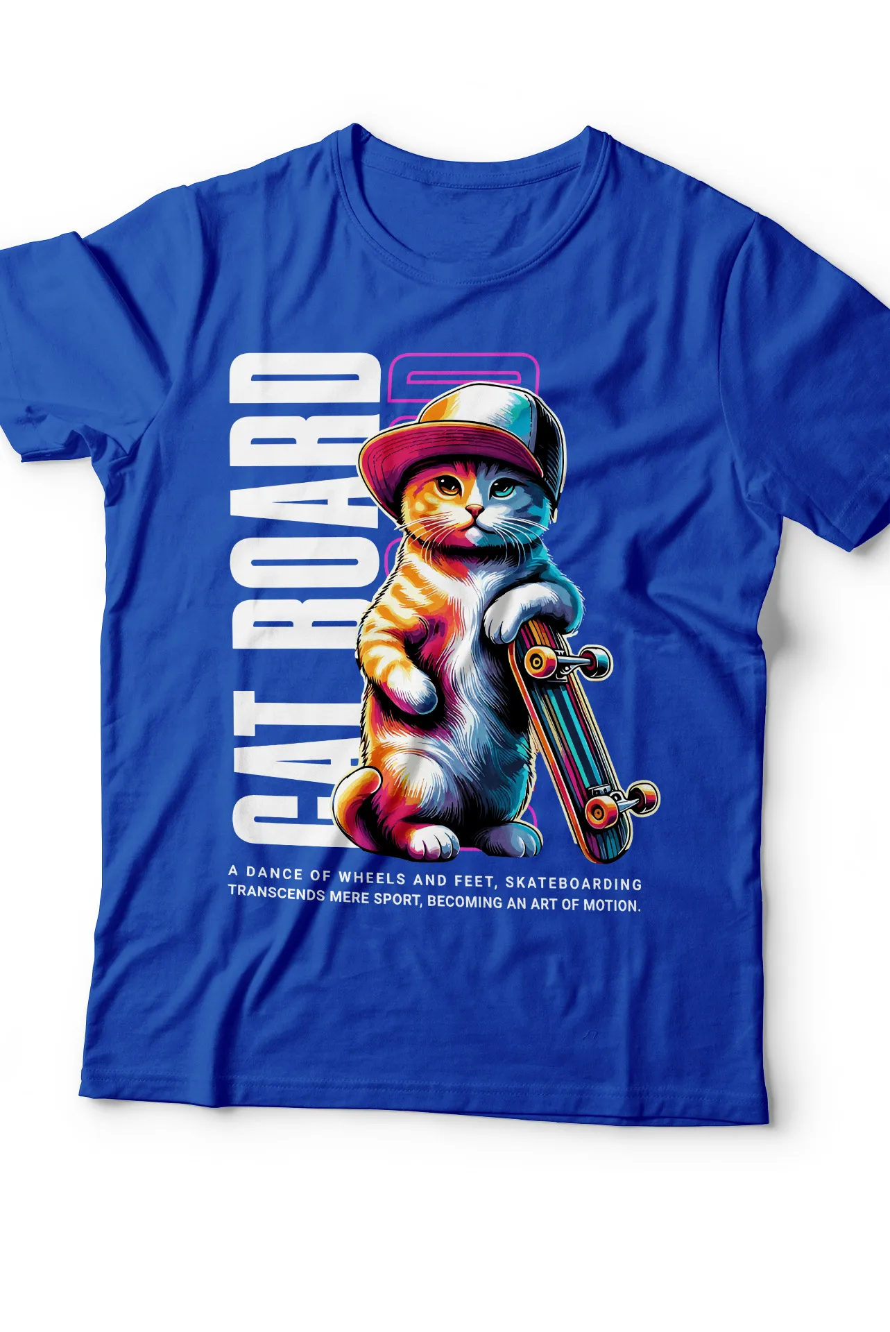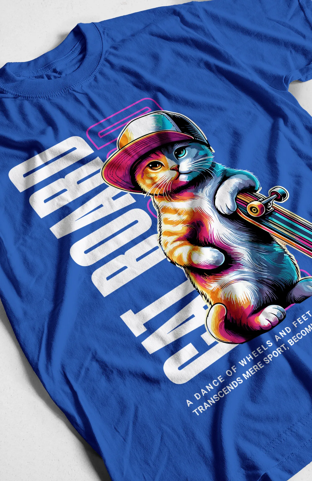 La camiseta "Cat Road" es perfecta para los días de verano o cualquier ocasión casual. Combínala con tus pantalones cortos o jeans favoritos para un look relajado y fresco. ¡Es el toque perfecto para mostrar tu pasión por el skate y tu estilo único!
