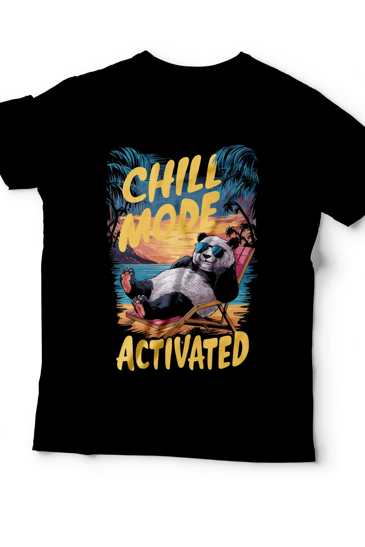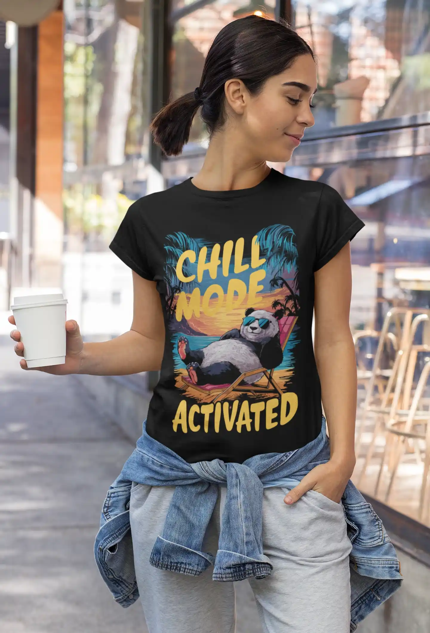 Si el relax fuera un diseño, sería esta camiseta. Con el mensaje 'Chill Mode Activated' y un adorable panda tumbado en una hamaca, esta prenda es una invitación a tomarse las cosas con calma y disfrutar de la vida. Su estilo tropical y desenfadado te hará sentir de vacaciones en cualquier momento, combinando a la perfección con tu atuendo de fin de semana.