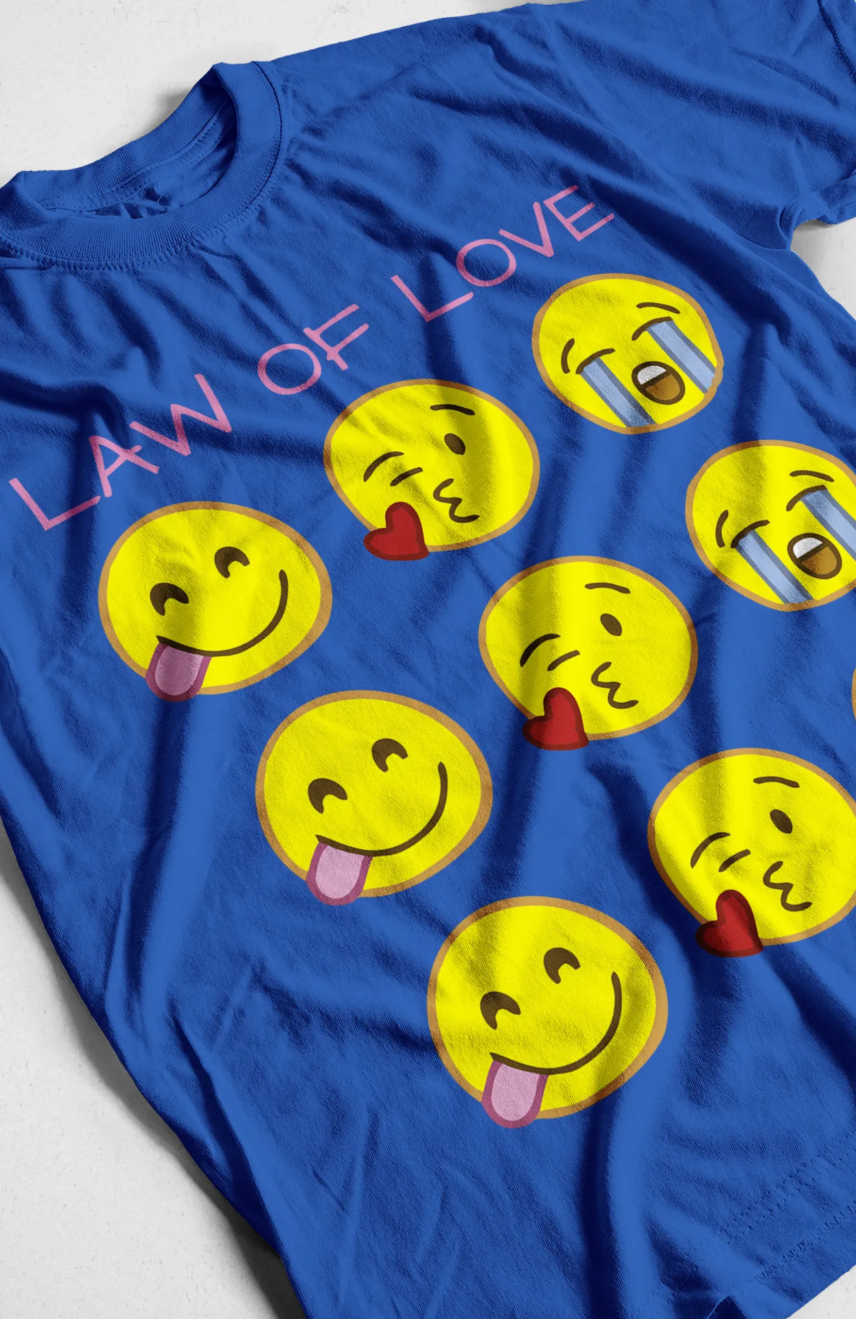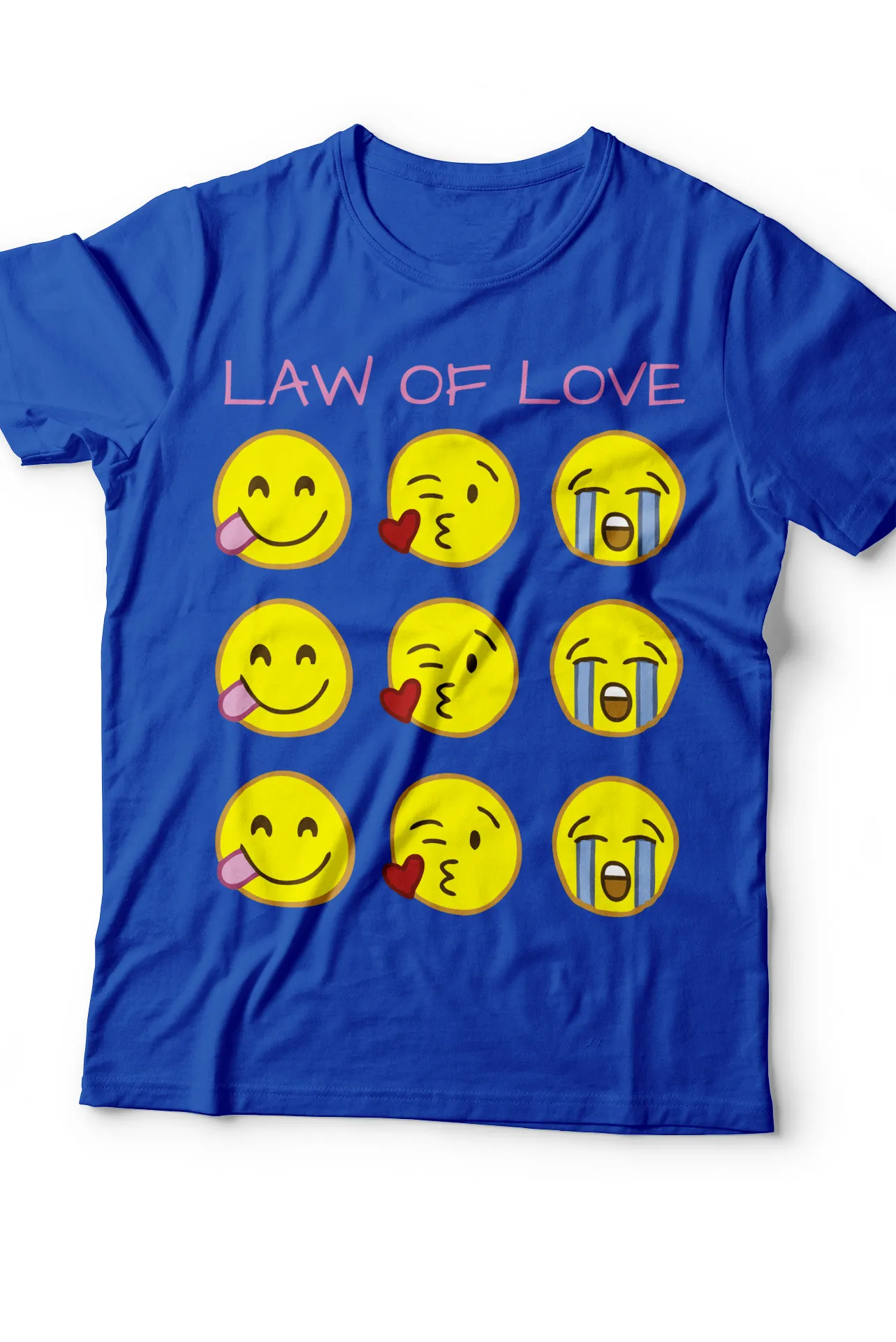 Luce un estilo juvenil, alegre y único con esta camiseta de emojis "Law of Love". ¡Agrégala a tu colección hoy mismo!