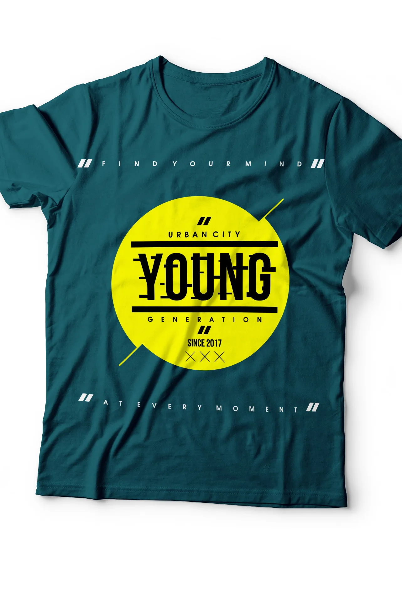 Lleva tu actitud al siguiente nivel con esta camiseta que combina un diseño moderno y lleno de personalidad. La ilustración central presenta un círculo amarillo con la frase "Young Generation" y otras frases alrededor como "Urban City" y "Find Your Mind". Esta prenda es ideal para quienes aman el estilo urbano, la moda original y un estilo de vida divertido y despreocupado. Perfecta para el día a día, esta camiseta se adapta a cualquier ocasión, desde un paseo por la ciudad hasta una tarde con amigos, destacándose por su diseño único y memorable.