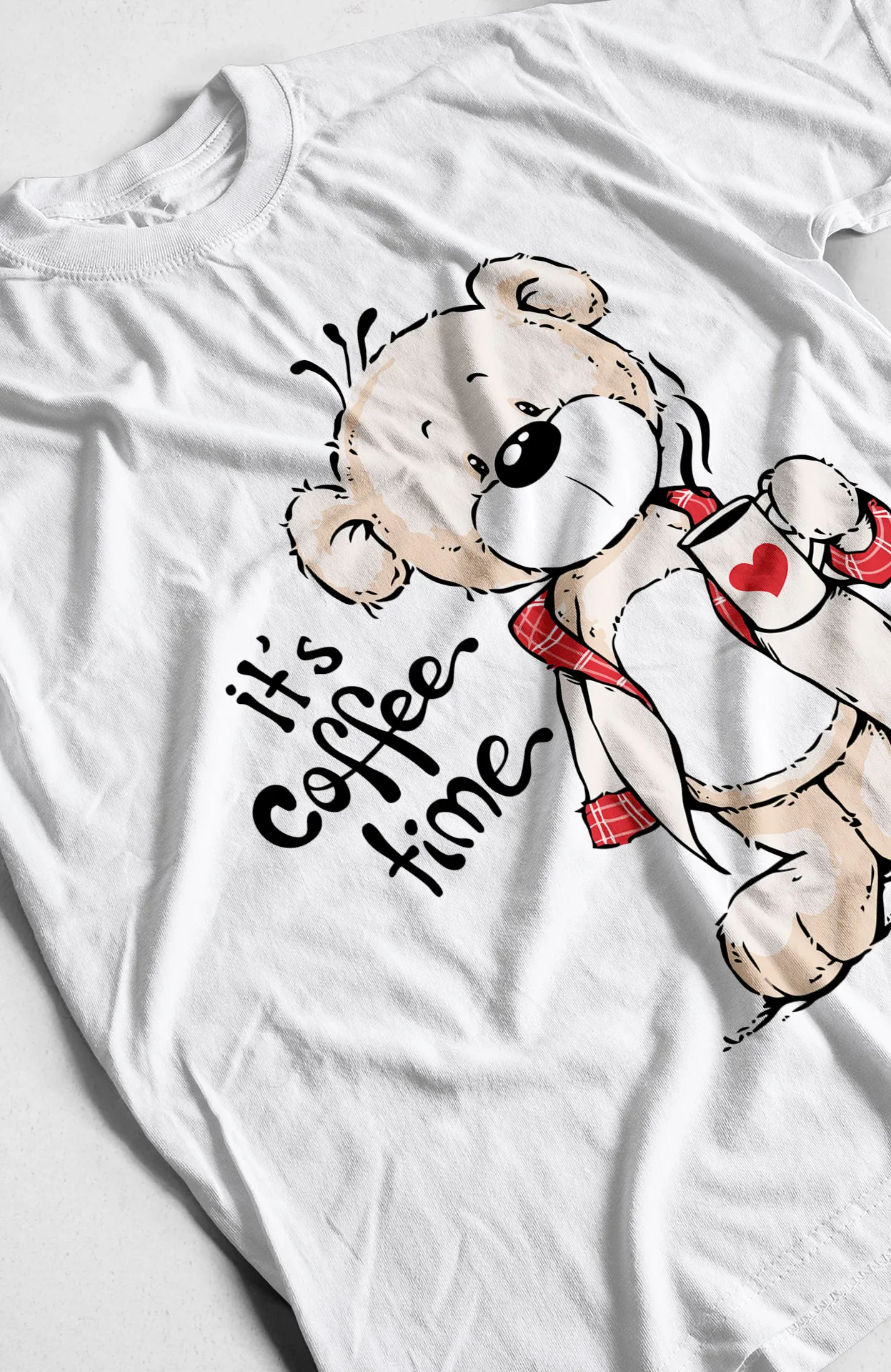 - Diseño Exclusivo: Ilustración de un oso de peluche disfrutando de una taza de café, con detalles encantadores.