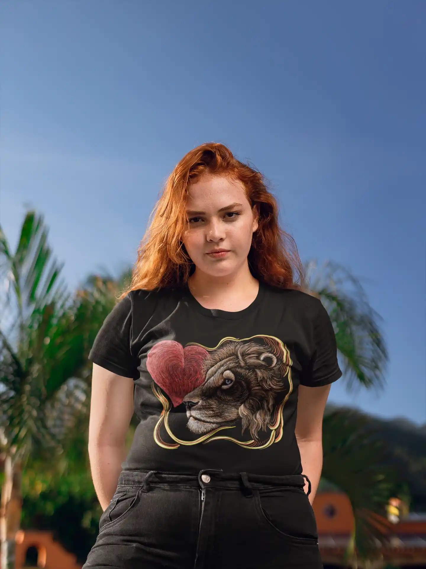 La Camiseta "Corazón de León" es una pieza central que no necesita mucho para destacar. Para un look casual y con actitud, combínala con unos jeans oscuros y unas botas. Si buscas un estilo más relajado, úsala con shorts y zapatillas. También puedes incorporarla en un outfit más elaborado con una chaqueta de cuero y accesorios minimalistas. Es la base perfecta para crear looks que reflejen tu personalidad.