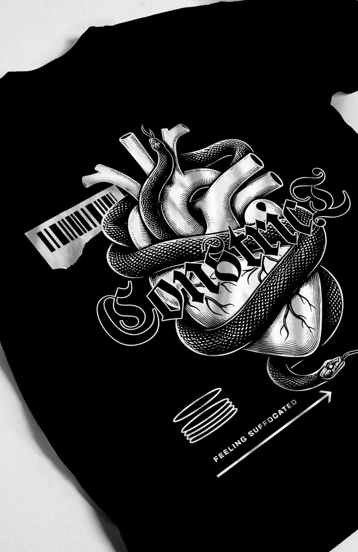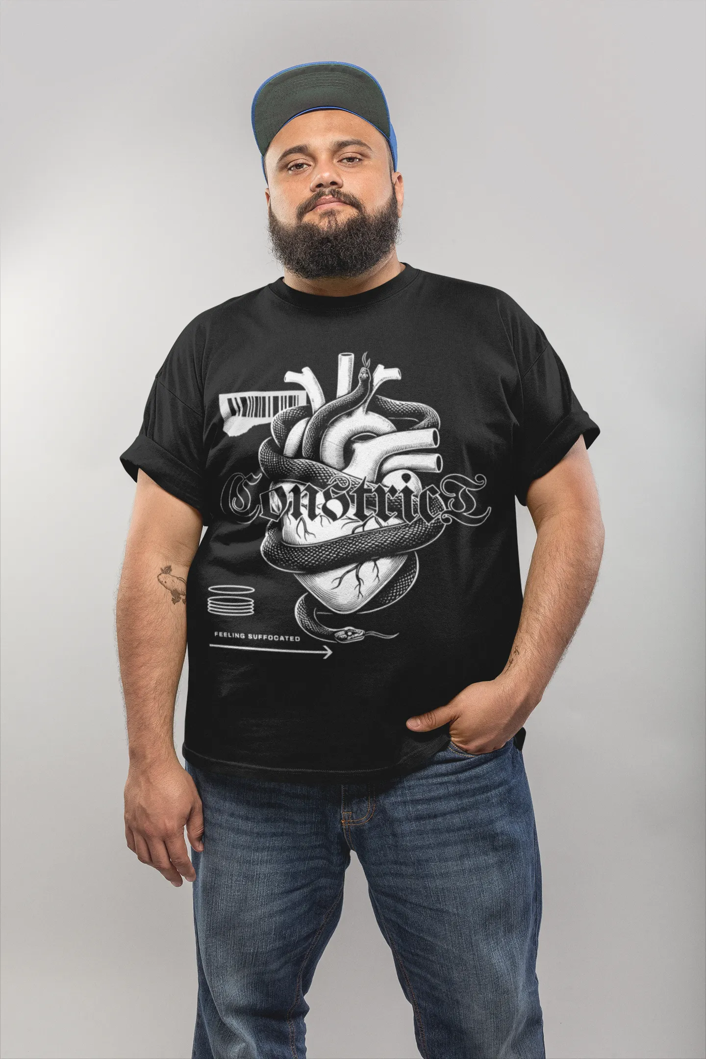 - Diseño Simbólico: El corazón anatómico entrelazado con la serpiente es una obra de arte, ideal para los que valoran el arte y los mensajes profundos en la moda.