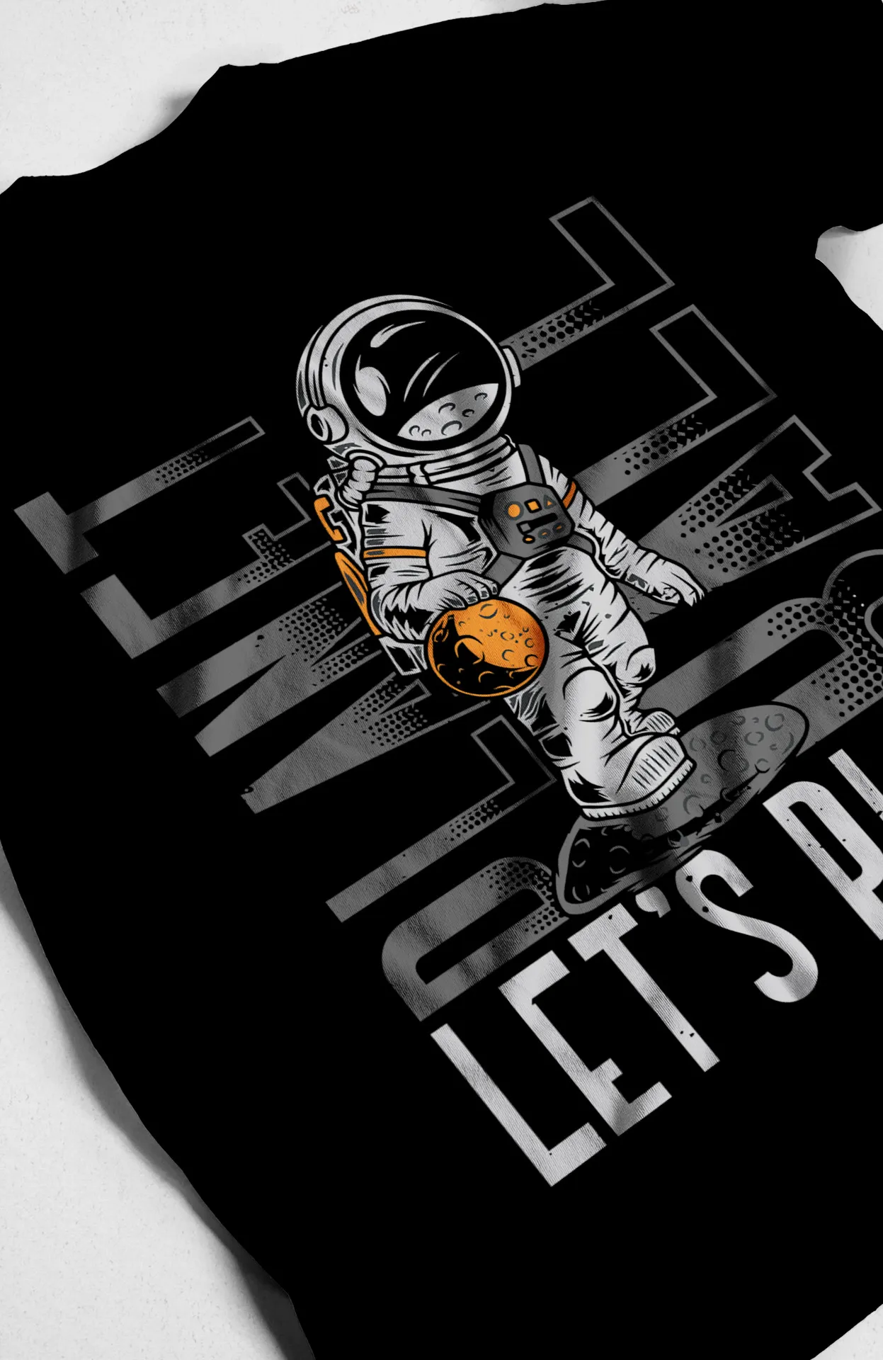 Lleva tu estilo a otro planeta con esta camiseta que combina un diseño atrevido y lleno de personalidad. La ilustración central presenta a un astronauta en el espacio, parado sobre la luna, con la frase "Let's Play!". Esta prenda es ideal para los amantes del espacio, la aventura y la moda original. Perfecta para el día a día, esta camiseta se adapta a cualquier ocasión, desde un paseo por la ciudad hasta una tarde con amigos, destacándose por su diseño único y memorable.