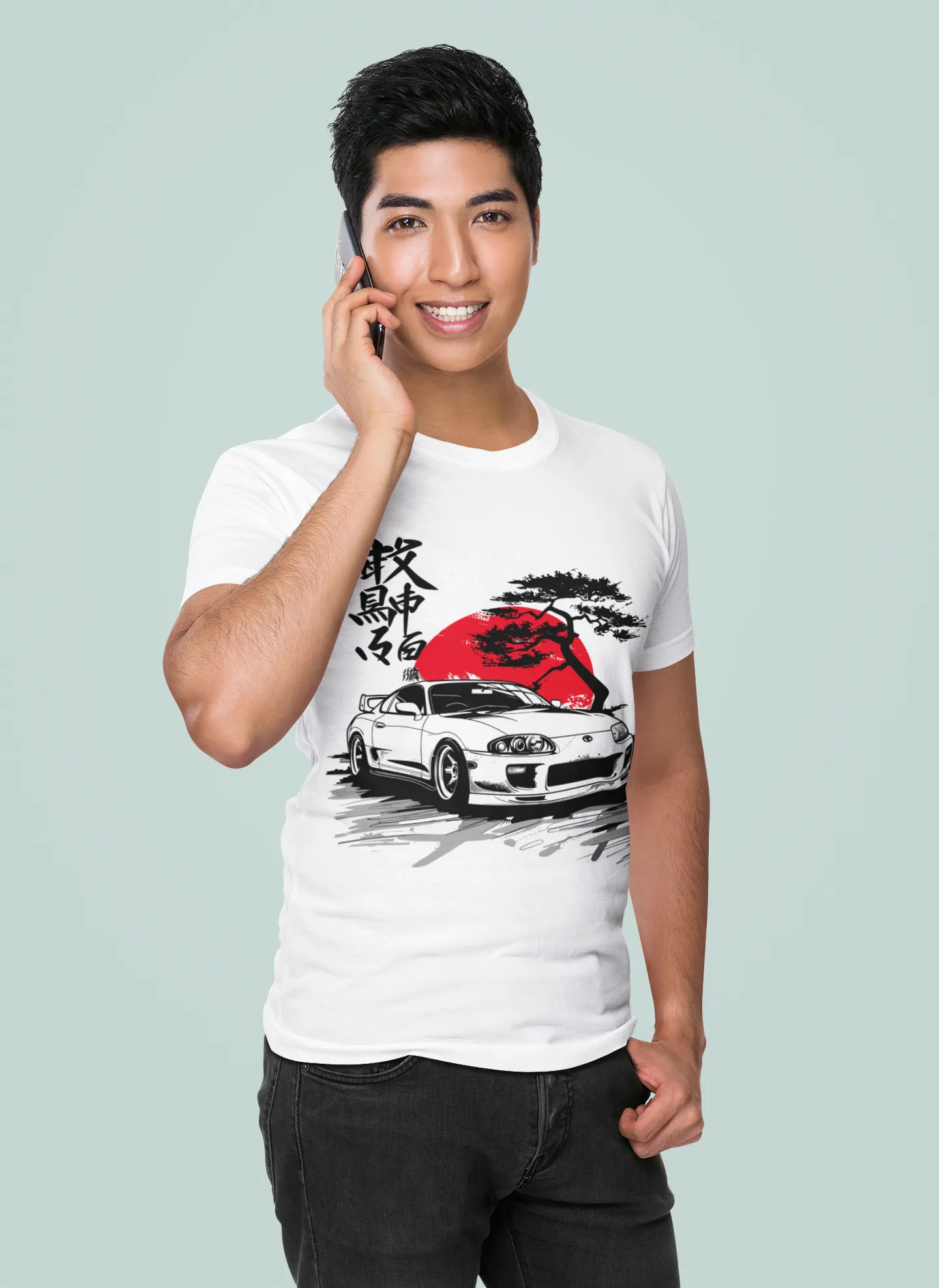 Muestra tu pasión por la velocidad con nuestra camiseta del legendario Toyota Supra. Su diseño detallado con elementos japoneses y el sol naciente le da un toque único y elegante. Esta prenda es la elección perfecta para los entusiastas de los autos JDM que buscan un estilo inconfundible y lleno de personalidad.