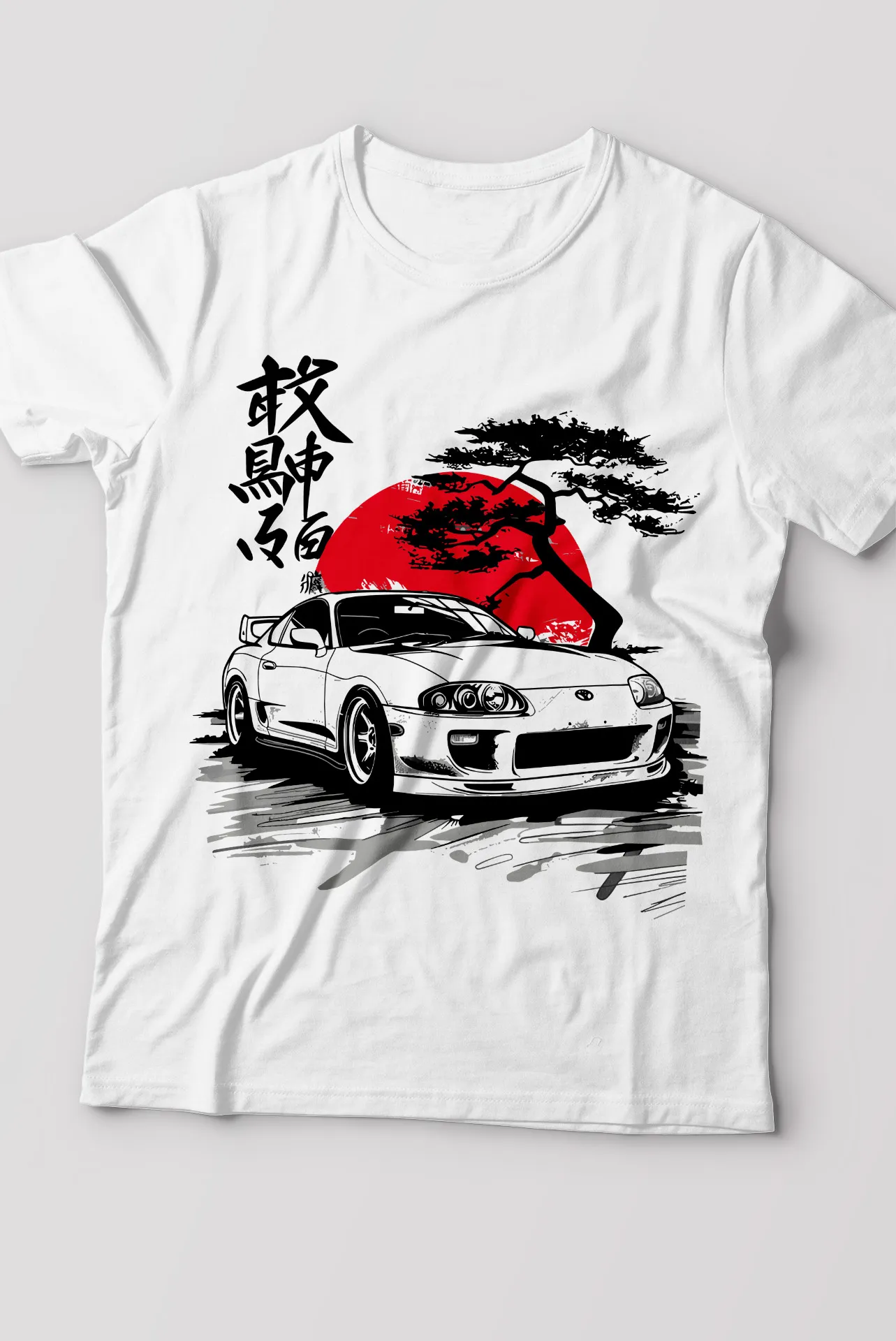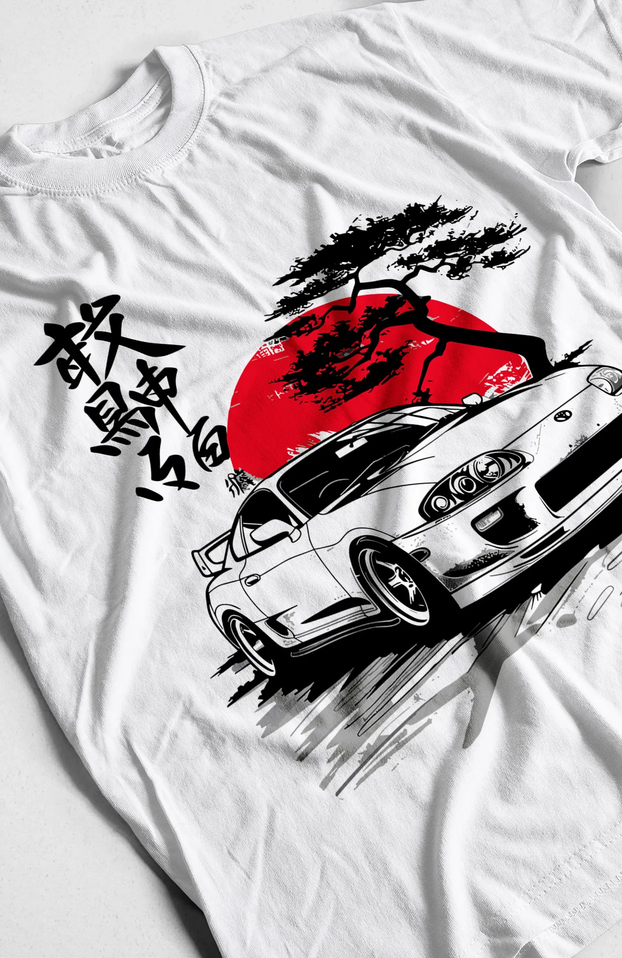 • Diseño: Estampado frontal del Toyota Supra A80, con el sol naciente japonés y un árbol, además de caracteres kanji.