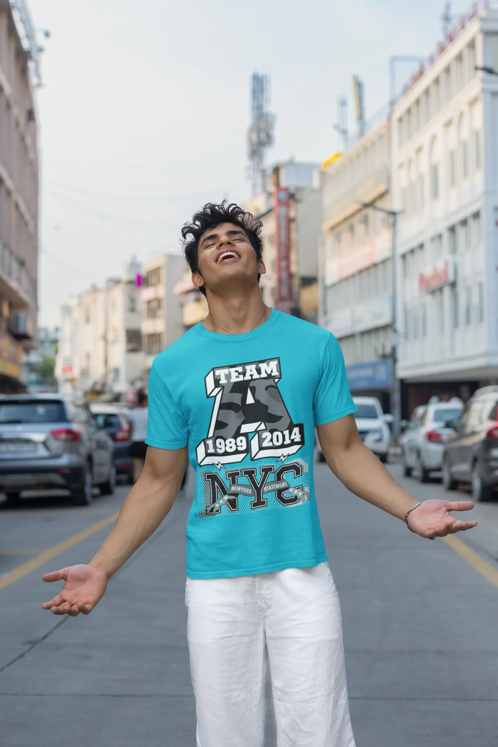 Lleva el espíritu de la ciudad que nunca duerme con nuestra exclusiva camiseta "Team NYC". Esta prenda es un homenaje a la energía y la cultura urbana de la ciudad, con un diseño que presenta una tipografía audaz y superpuesta que evoca una estética streetwear, con las frases "TEAM A" y "1989-2014 NYC". Es la elección perfecta para quienes desean infundir su look con un mensaje de confianza y conexión con una de las ciudades más icónicas del mundo.