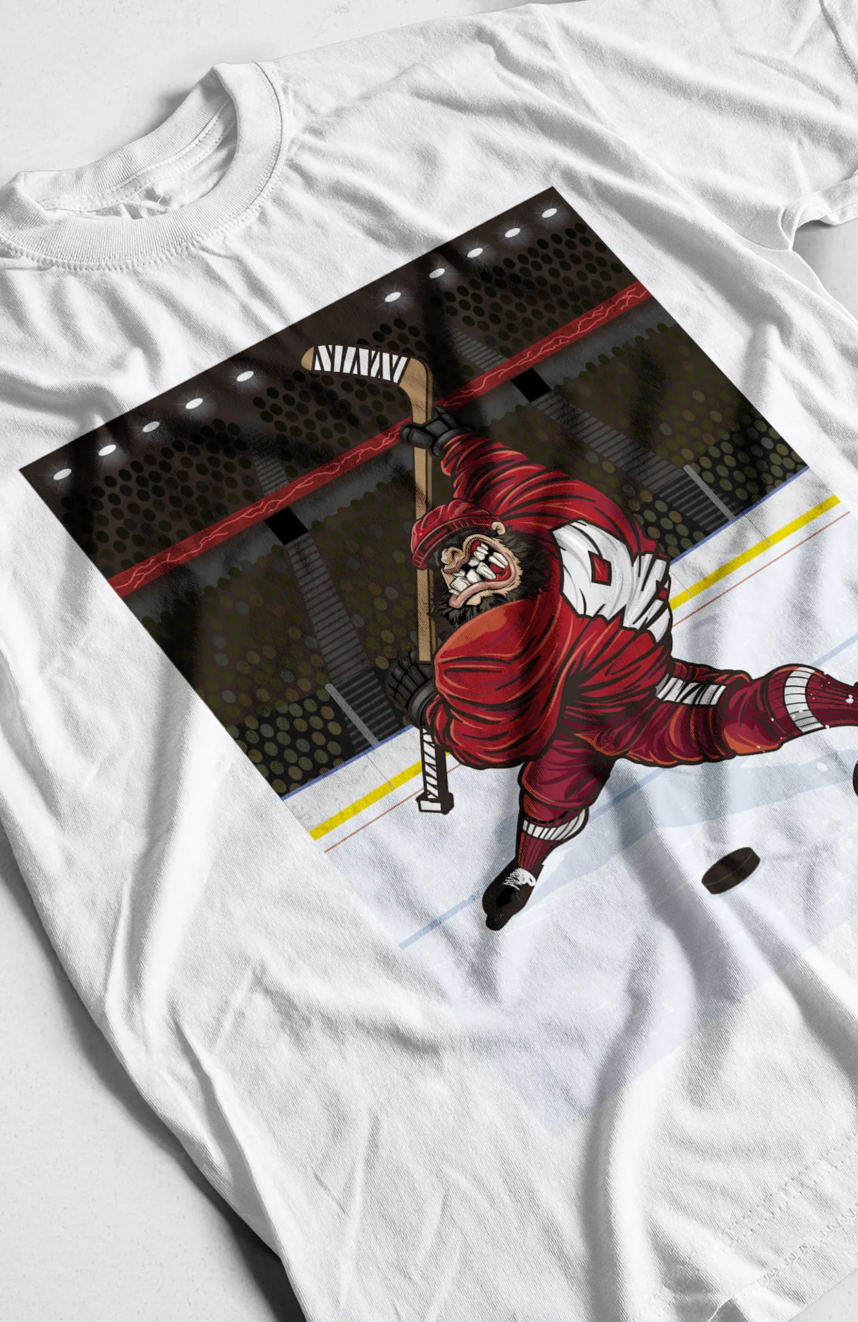 - Diseño Exclusivo: Estampado de un gorila jugador de hockey con un estilo deportivo y divertido.