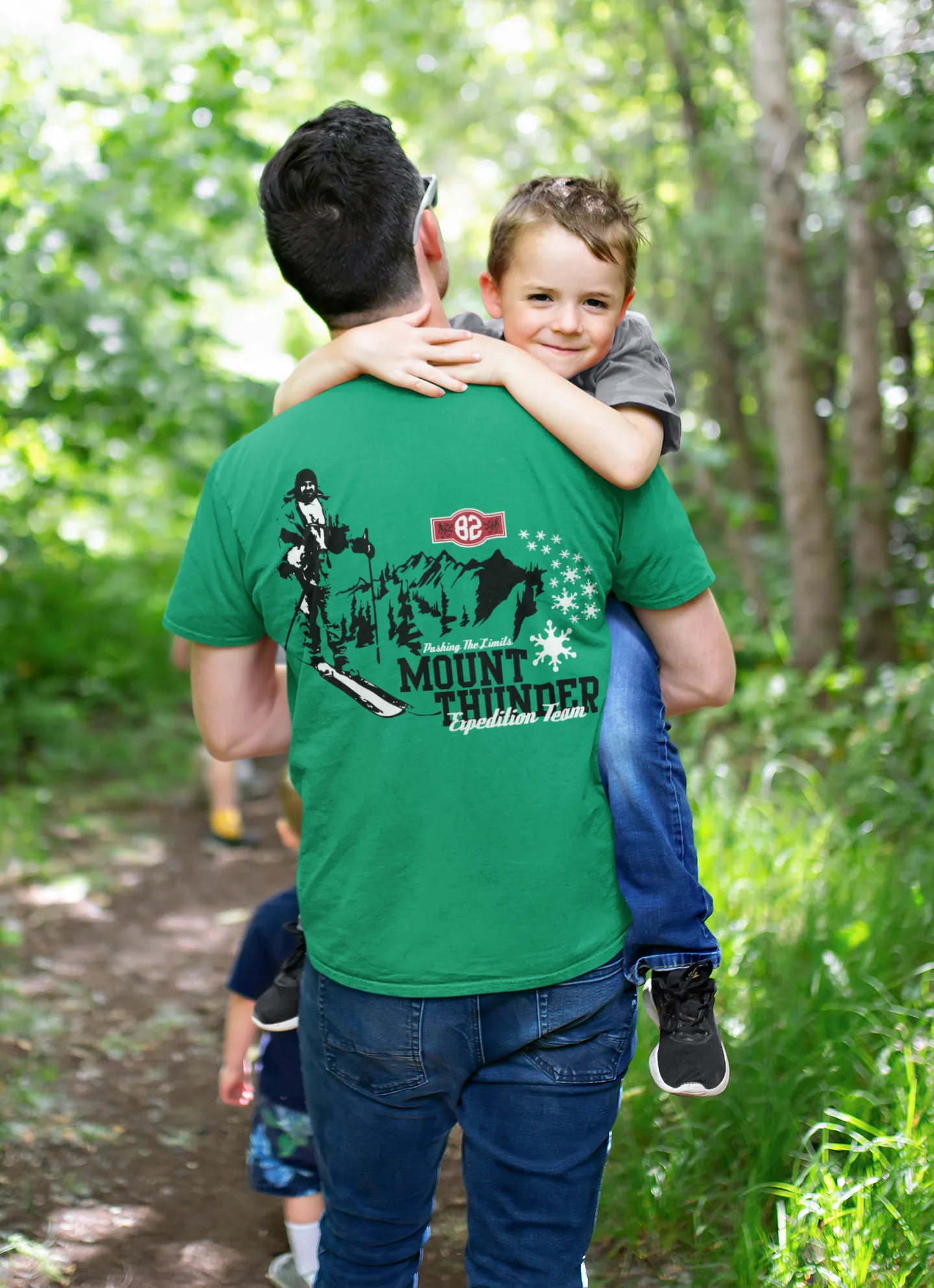 | Estampado | Tipografía de estilo vintage con las palabras "Mount Thunder" y "Expedition Team" |