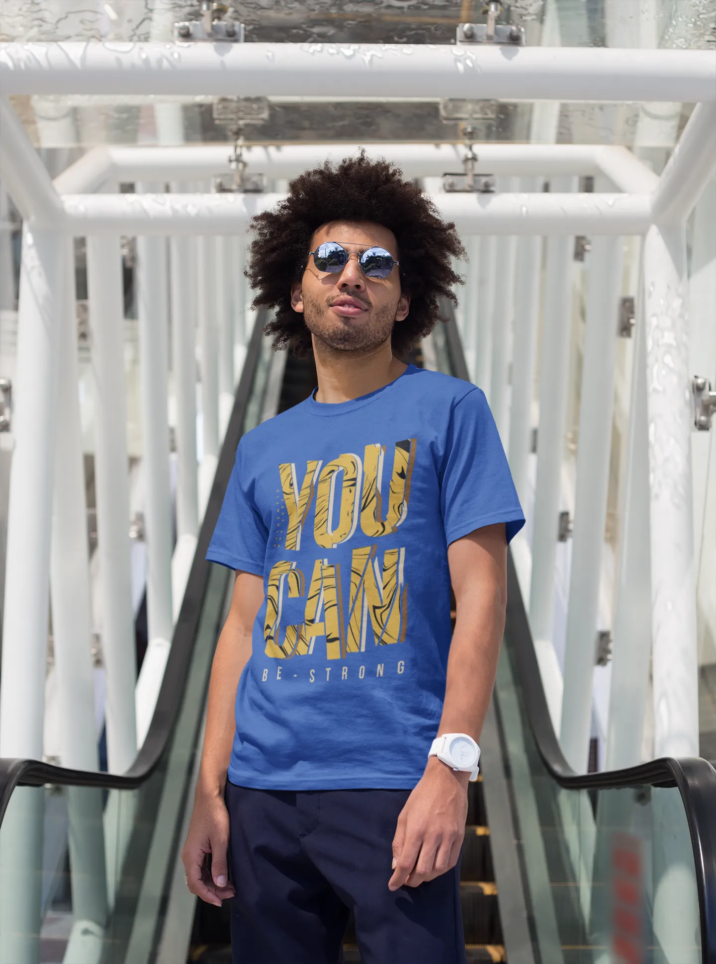 - Diseño: Estampado frontal con las leyendas "YOU CAN" y "BE STRONG" en tipografía bold con textura.