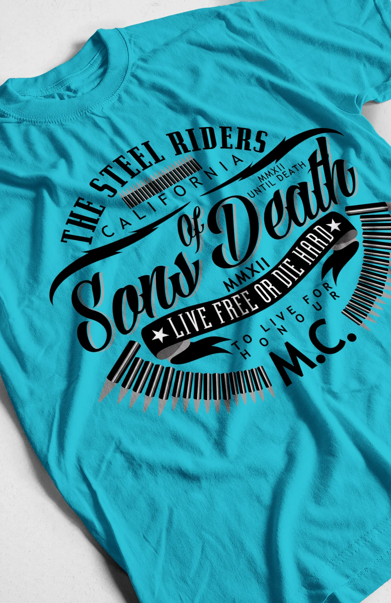 Lleva el espíritu de la carretera contigo a donde vayas con nuestra exclusiva camiseta de "Sons of Death". Esta prenda es un homenaje a la cultura motociclista y la actitud rebelde, con un diseño que evoca la energía de la carretera y la pasión por las motos. El diseño de un escudo con la frase "SONS OF DEATH" y la leyenda "THE STEEL RIDERS M.C." crean una estética que es a la vez etérea y poderosa. Es la elección perfecta para quienes aprecian la moda con un toque de arte, un estilo elegante y un mensaje de confianza.