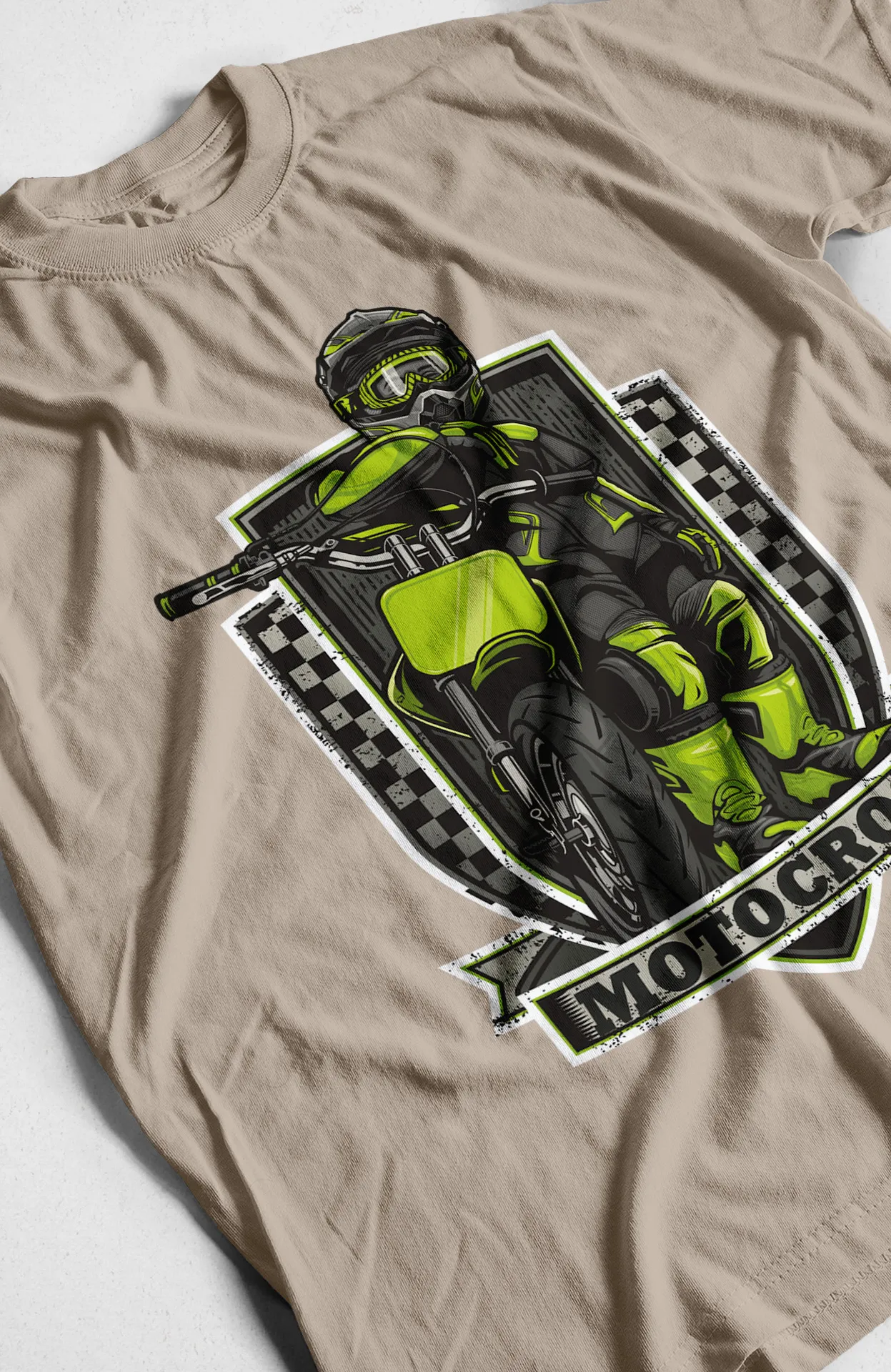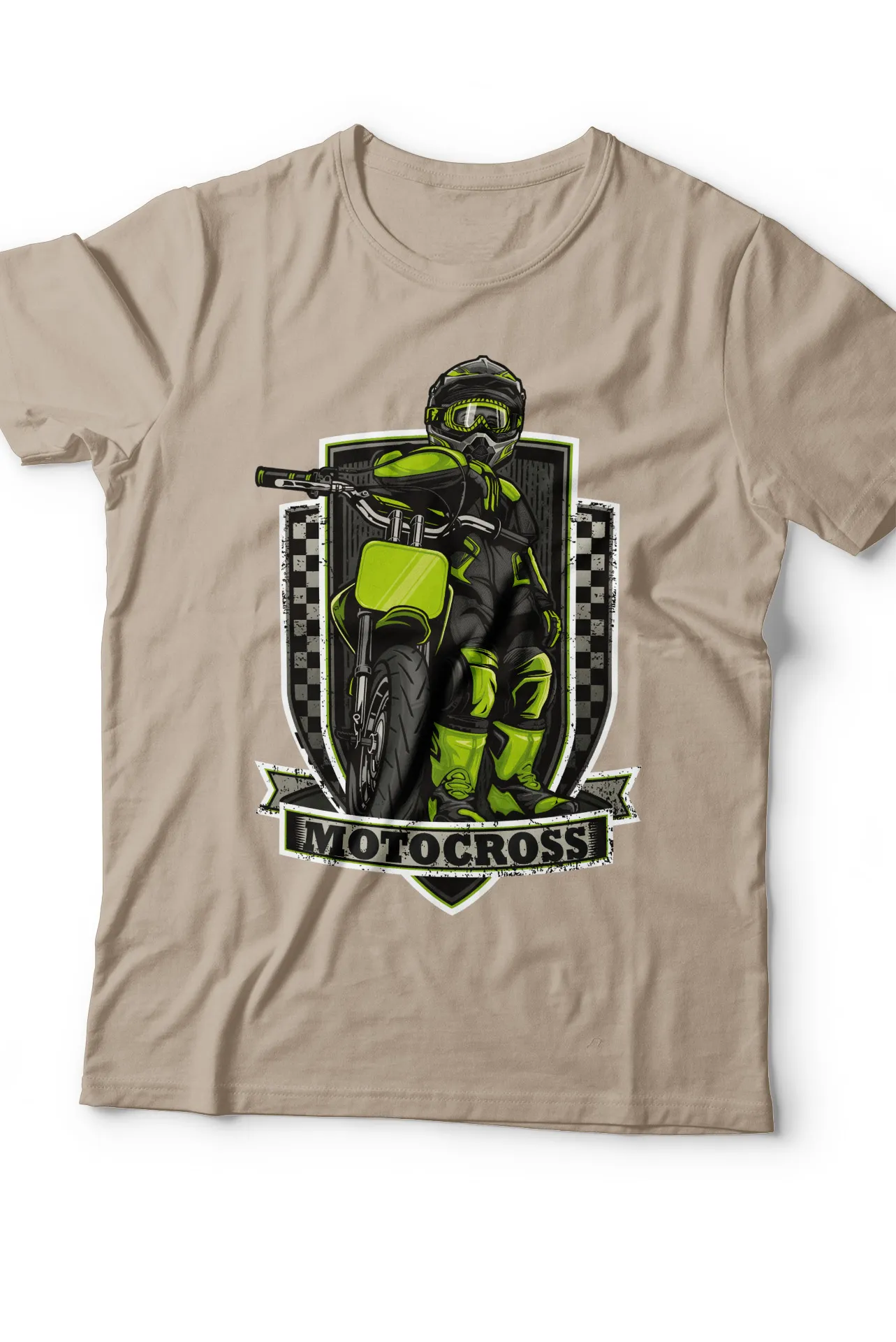 Lleva la emoción de las carreras todoterreno a tu guardarropa con esta camiseta. El diseño central presenta un motociclista de motocross con un estilo audaz y dinámico, con un fondo de cuadros de carreras y un letrero que dice "Motocross". Esta prenda es ideal para los amantes de la velocidad, los deportes extremos y la moda original. Perfecta para el día a día, esta camiseta se adapta a cualquier ocasión, desde un día en la pista de carreras hasta una tarde con amigos, destacándose por su diseño atrevido y memorable.