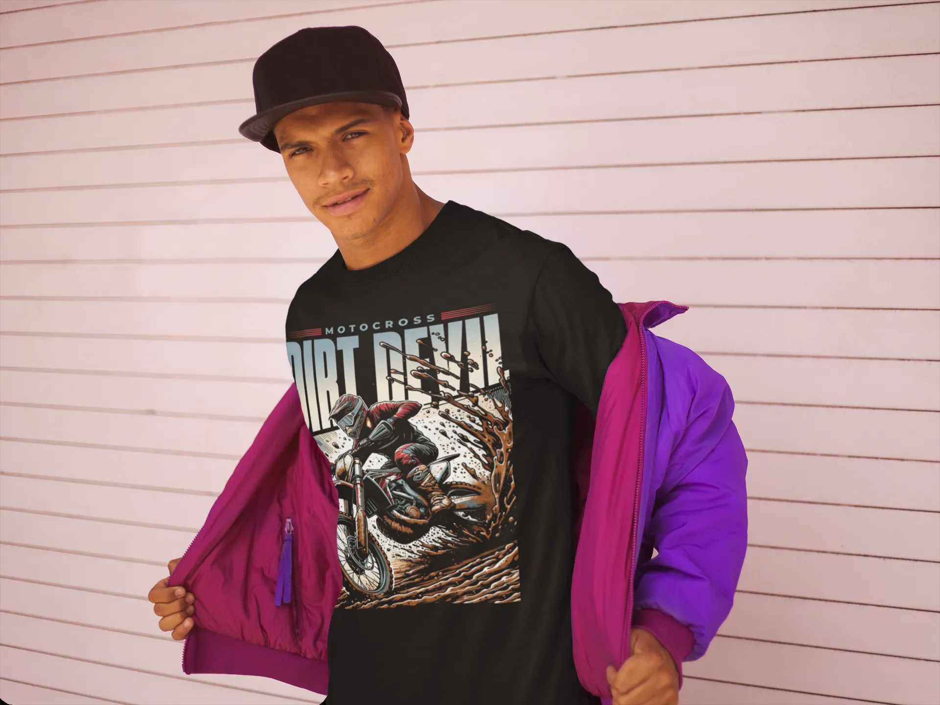 - Diseño: Estampado frontal de un motociclista en una pista de tierra, con las leyendas "MOTOCROSS" y "DIRT DEVIL".