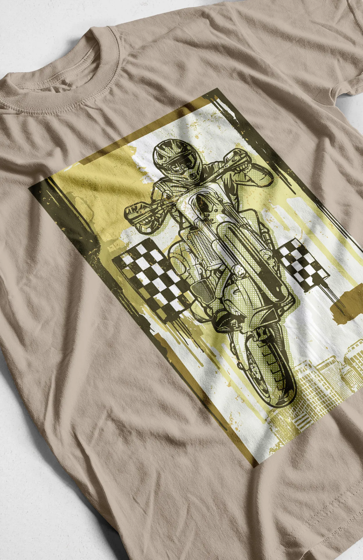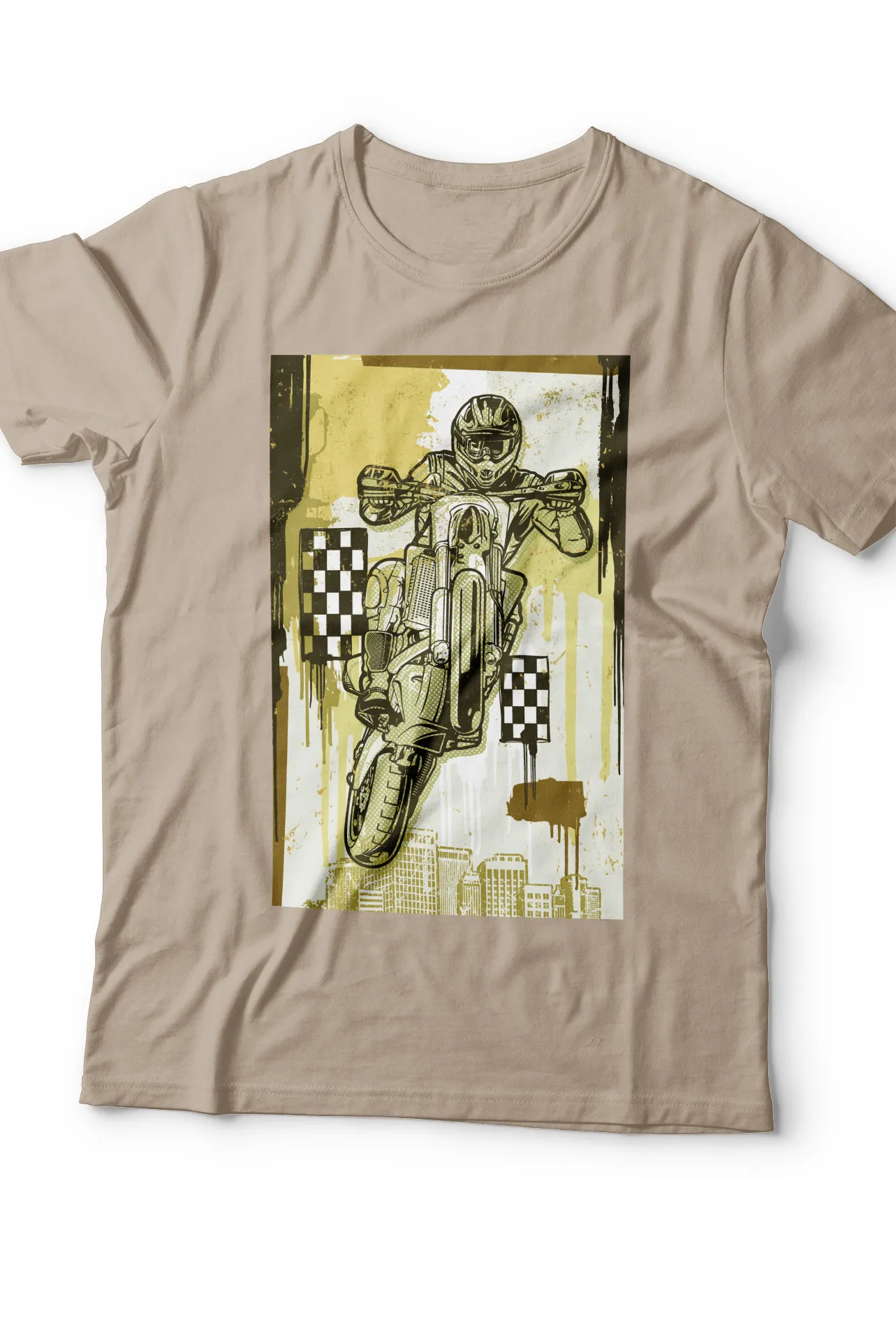 Lleva la emoción de las carreras a tu guardarropa con esta camiseta. El diseño central presenta a un motociclista de motocross en plena acción, con un estilo audaz y dinámico. Esta prenda es ideal para los amantes de la velocidad y de la moda original. Perfecta para el día a día, esta camiseta se adapta a cualquier ocasión, desde un día en la pista de carreras hasta una salida casual, destacándose por su diseño atrevido y memorable.