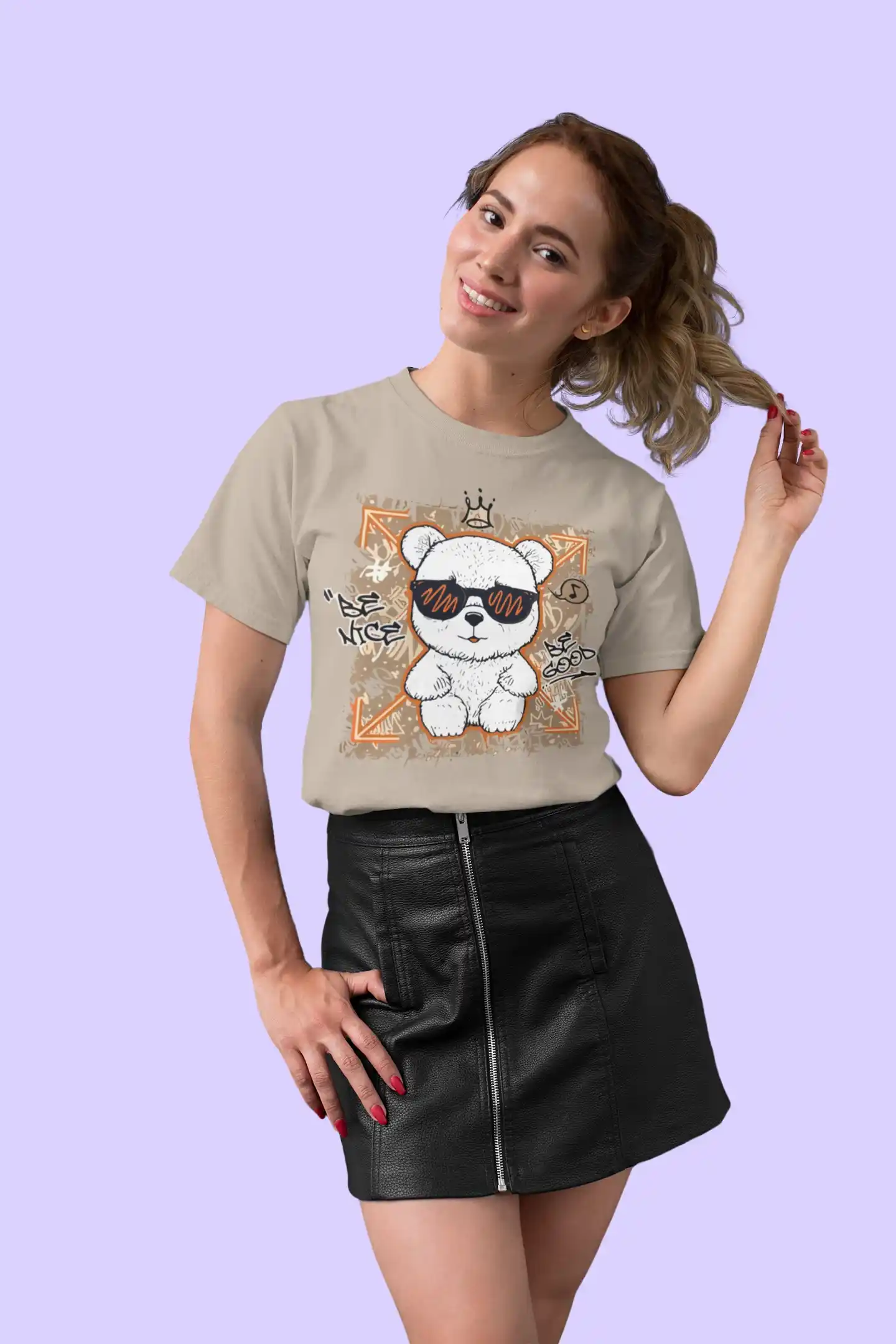 Desafía lo convencional y abraza un estilo único con nuestra exclusiva camiseta de oso panda con gafas de sol. Esta prenda es la mezcla perfecta de lo tierno y lo audaz, con un diseño que presenta un oso panda con una actitud relajada y regia a la vez. Rodeado de mensajes positivos como "BE NICE" y "BE GOOD", y gráficos estilo doodle, esta camiseta es un manifiesto de buen rollo y confianza. Es la elección ideal para quienes desean infundir su look con personalidad y un toque de humor.