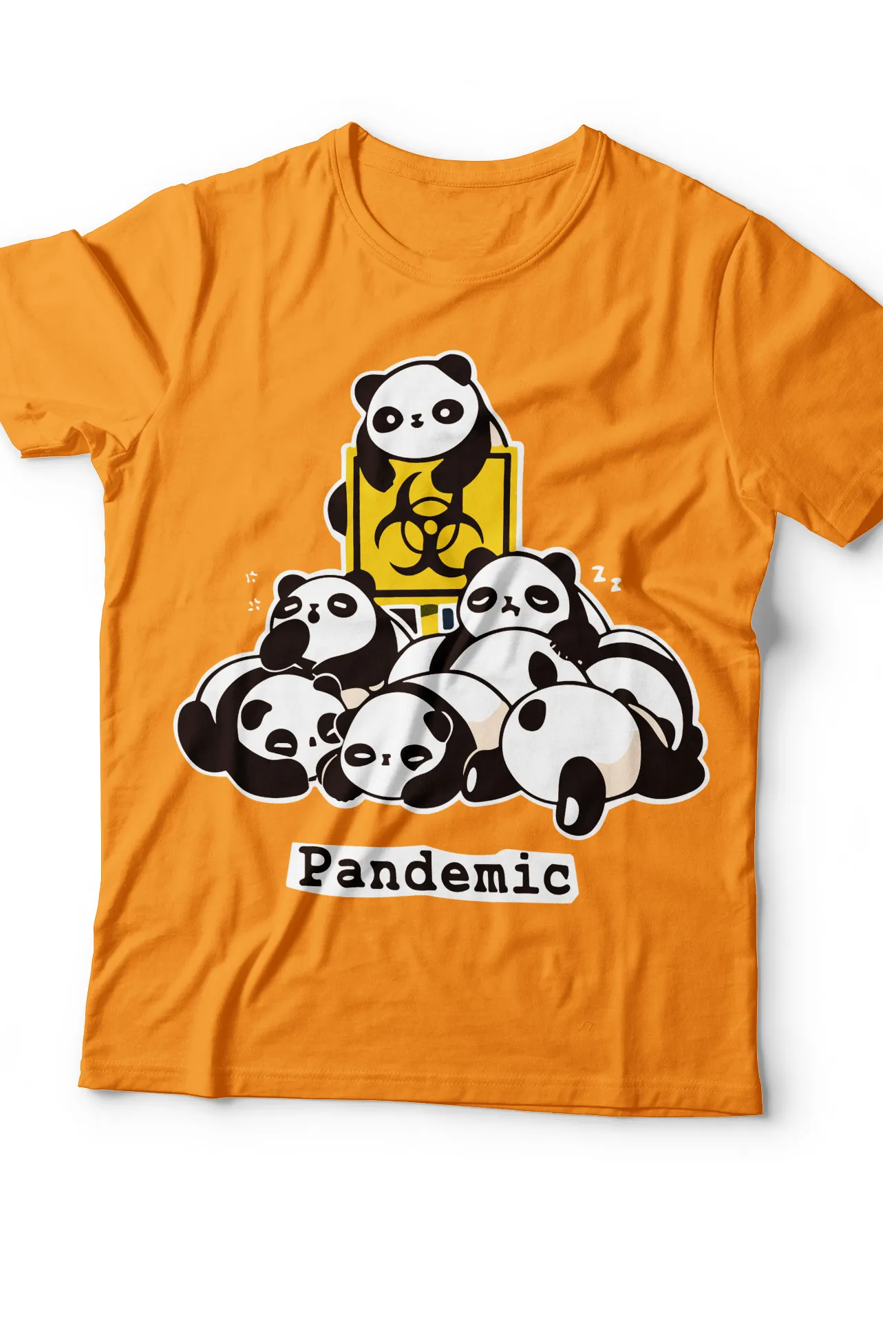 Dale un toque de diversión y humor a tu guardarropa con esta camiseta única. El diseño central presenta a un adorable grupo de pandas apilados bajo un letrero de riesgo biológico, con la palabra "Pandemic" en la parte inferior. Esta prenda es ideal para quienes aman a los pandas y el humor inteligente. Perfecta para el día a día, esta camiseta se adapta a cualquier ocasión, desde un día de juegos hasta una salida casual, destacándose por su diseño atrevido y memorable.