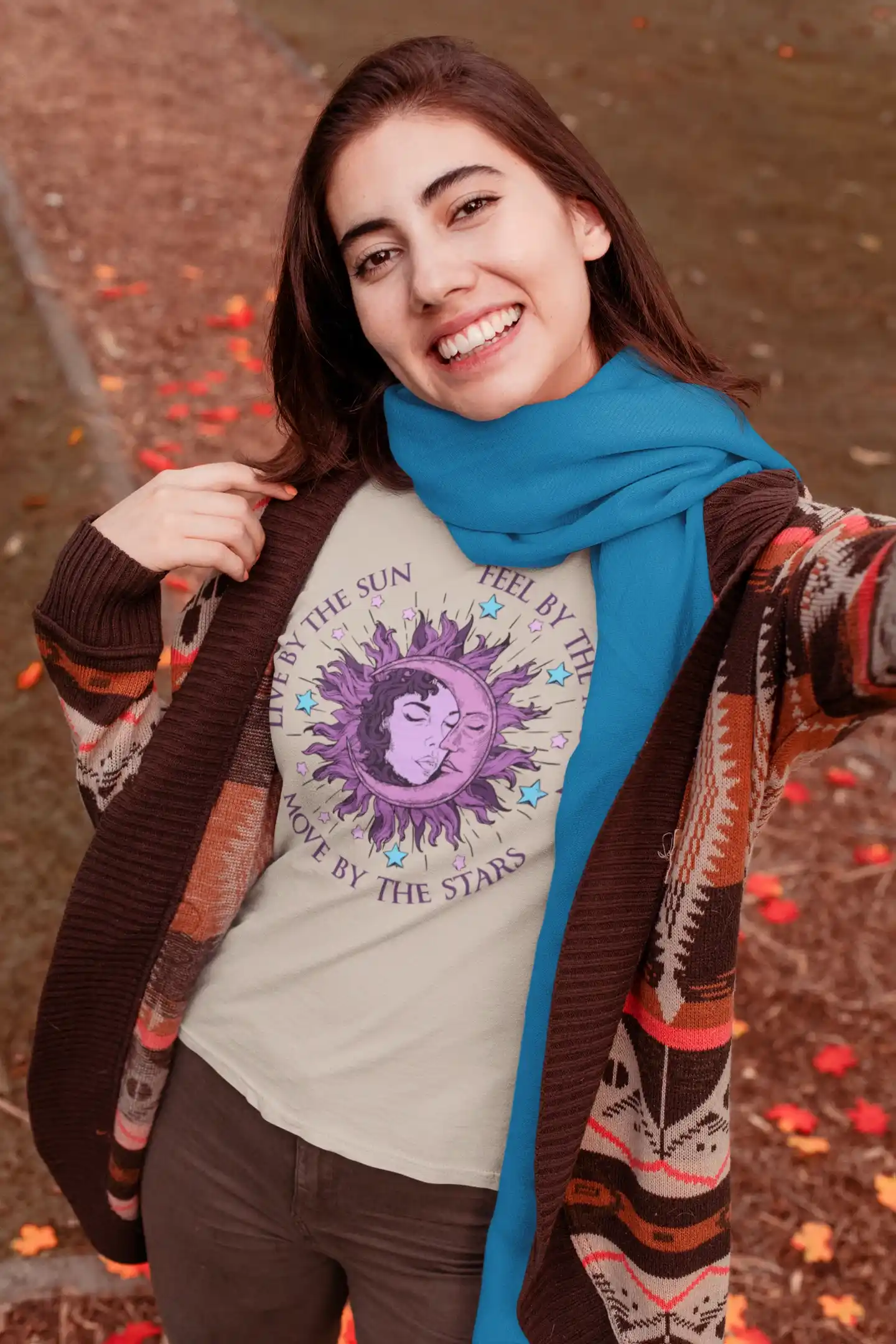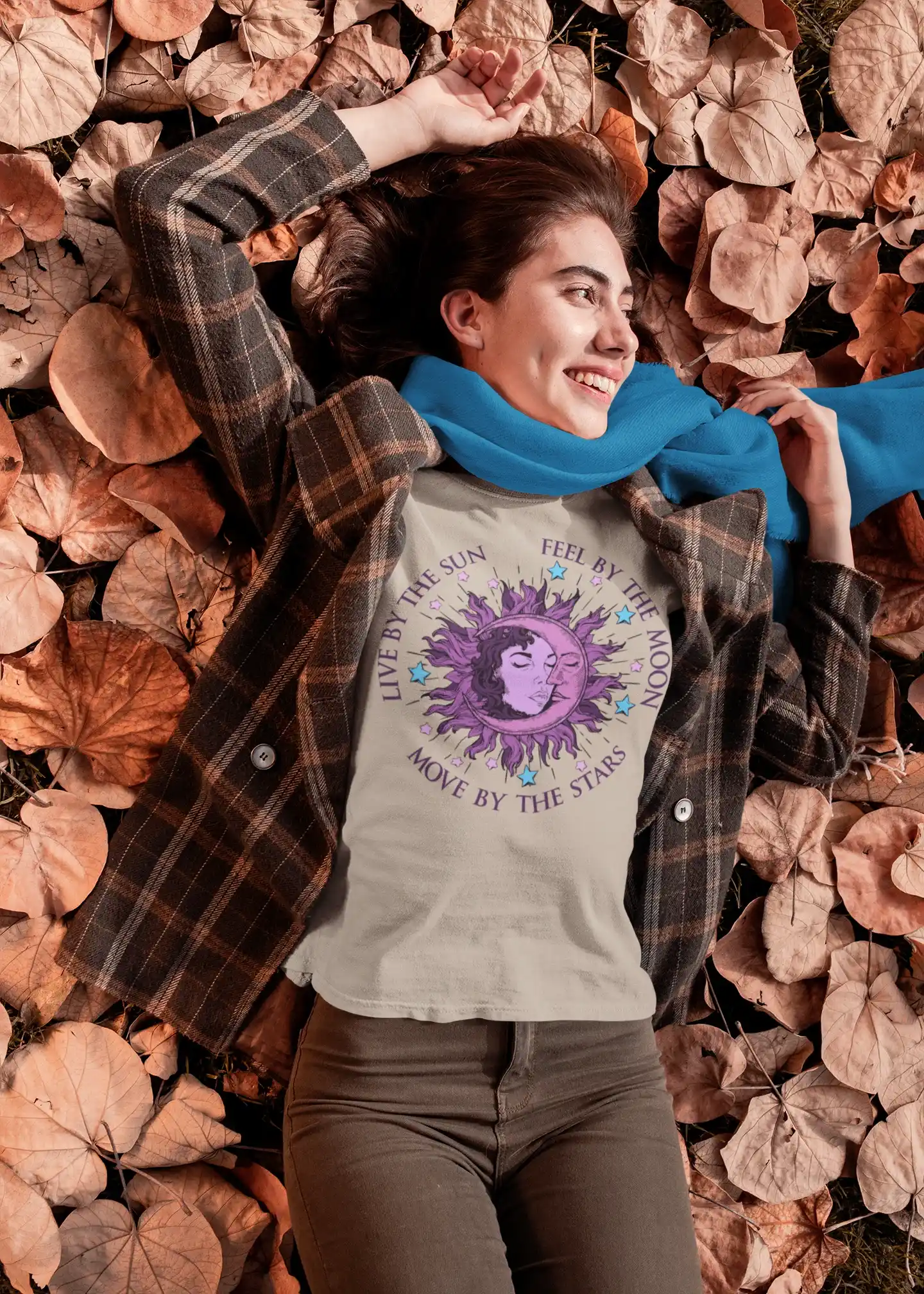 Esta camiseta es la pieza perfecta para construir un atuendo que refleje tu conexión con el universo. Combínala con jeans, pantalones anchos o una falda larga para un look bohemio y cómodo. Es ideal para un paseo por el parque, una sesión de yoga o simplemente para un día relajado. Su diseño versátil te permite lucir un estilo relajado y con un toque de magia.