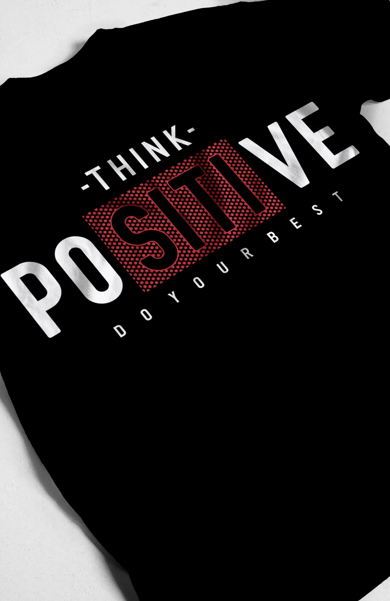 | Estampado | Tipografía "Think Positive" con un fondo abstracto y un fondo de papel |