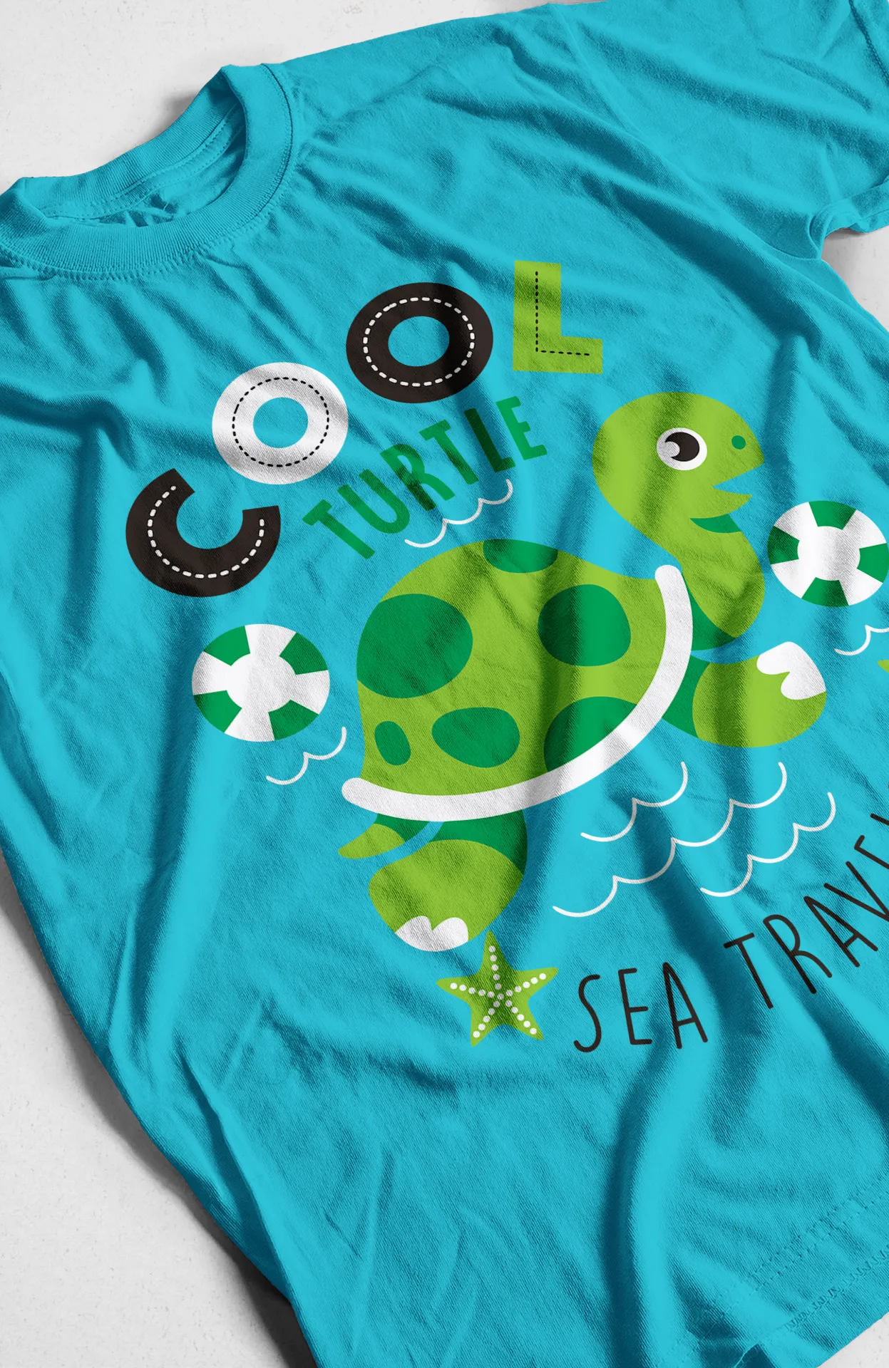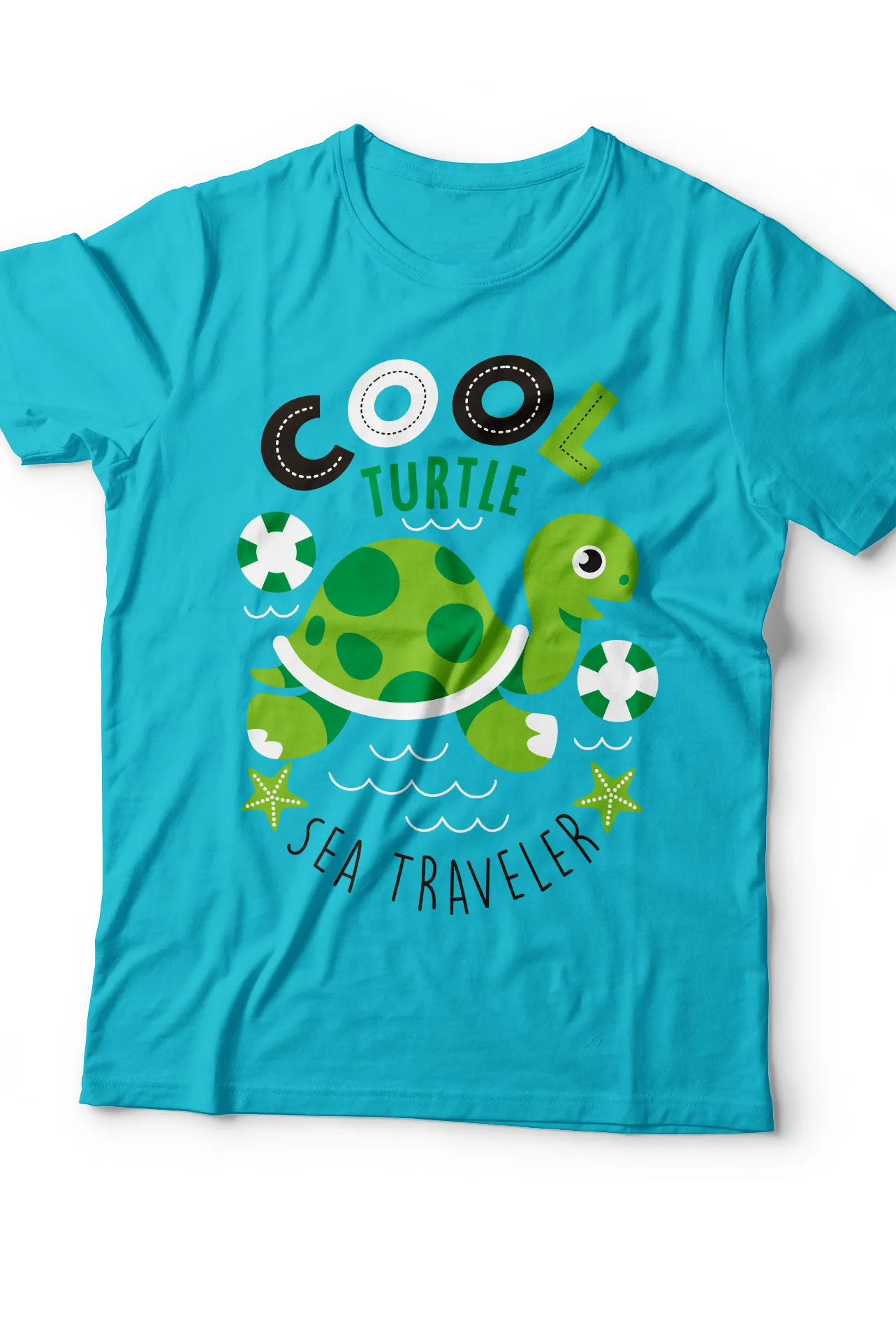 - Diseño Exclusivo: Estampado de una tortuga marina con gafas de sol y la frase "Cool Sea Traveler".
