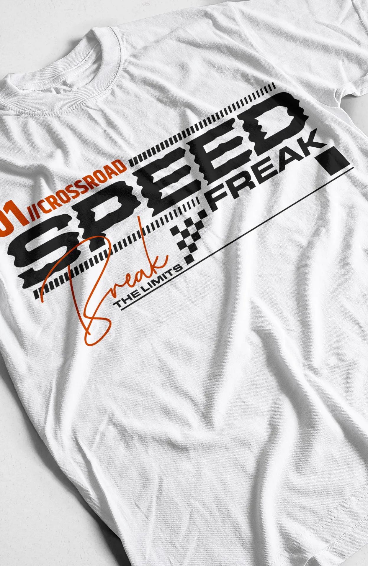 Lleva el espíritu de la velocidad y la adrenalina contigo a donde vayas con nuestra exclusiva camiseta de "Speed Freak Crossroad". Esta prenda es un homenaje a la energía y la cultura de las carreras, con un diseño que presenta una tipografía audaz y superpuesta que evoca una estética streetwear, con las frases "SPEED FREAK" y "BREAK THE LIMITS". Es la elección perfecta para quienes desean infundir su look con un mensaje de confianza y conexión con una de las épocas más icónicas del mundo.