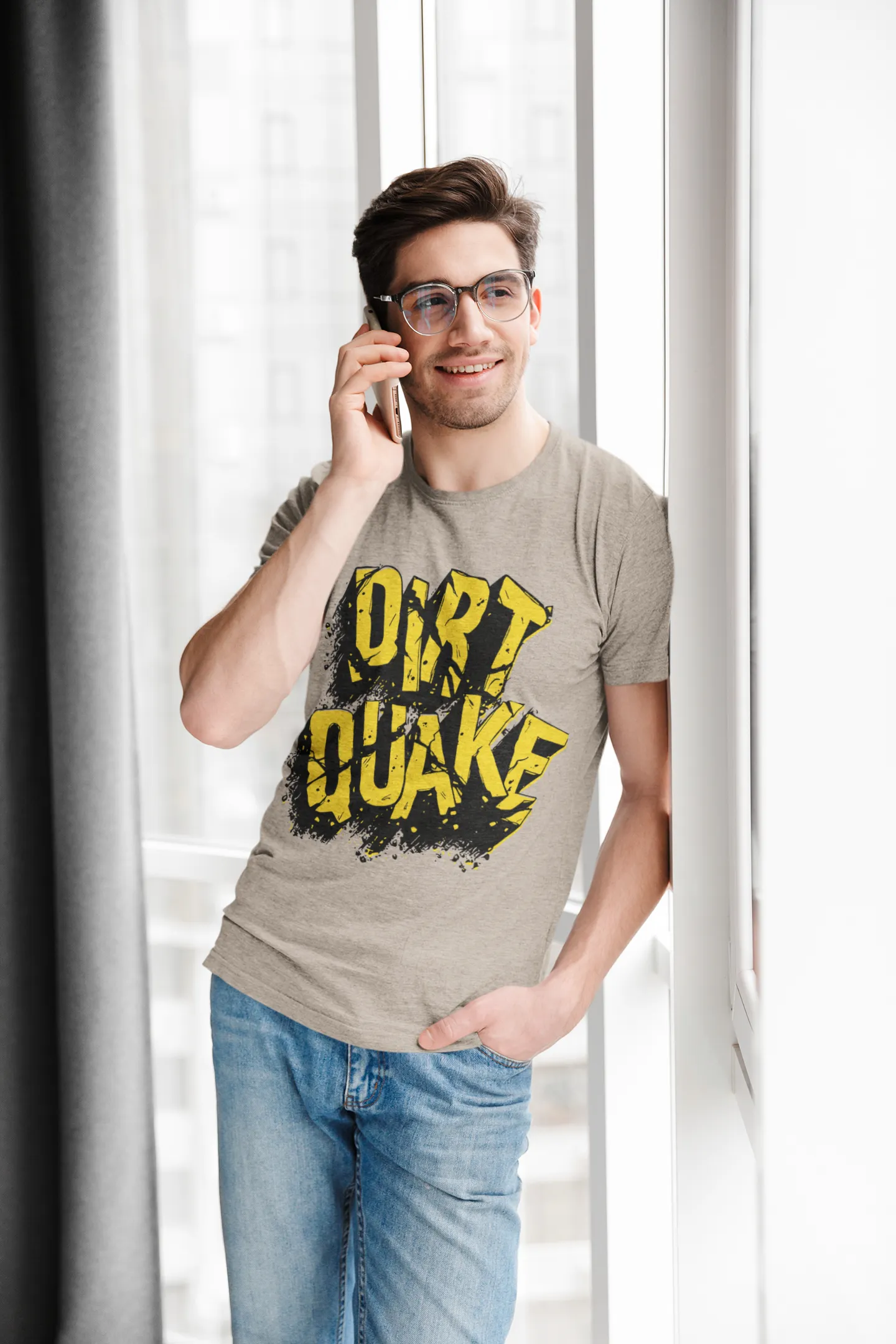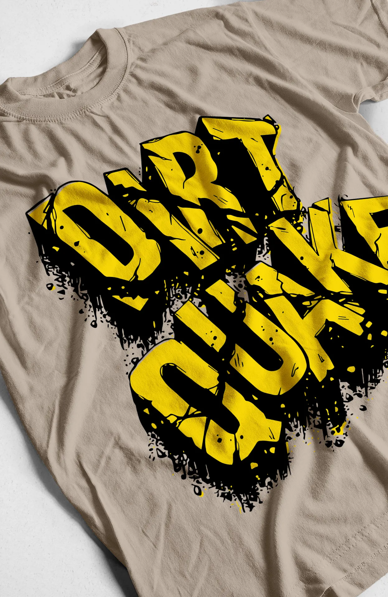 Muestra tu lado audaz y rebelde con nuestra camiseta «Dirtquake». Su diseño de estilo grafitis con letras amarillas desgastadas sobre un fondo gris evoca una imagen de fuerza y adrenalina. Es perfecta para quienes buscan un look que combine la moda urbana con un toque de actitud. Ideal para el uso diario, te asegura un estilo que destaca con personalidad y originalidad.