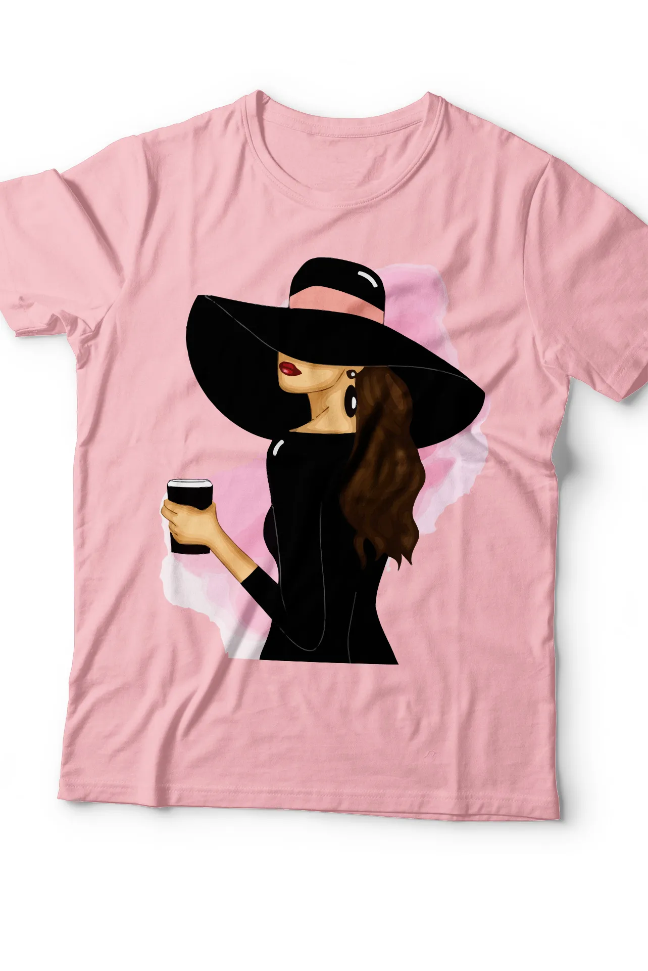 Lleva tu pasión por el estilo y la elegancia a otro nivel con nuestra camiseta exclusiva. Diseñada para la mujer moderna que valora el arte y la sofisticación, esta prenda no es solo una pieza de vestir, es una extensión de tu personalidad. El diseño de una mujer con un sombrero elegante y una taza de café evoca un aura de misterio, poder y chic urbano, convirtiéndote en el centro de todas las miradas.
