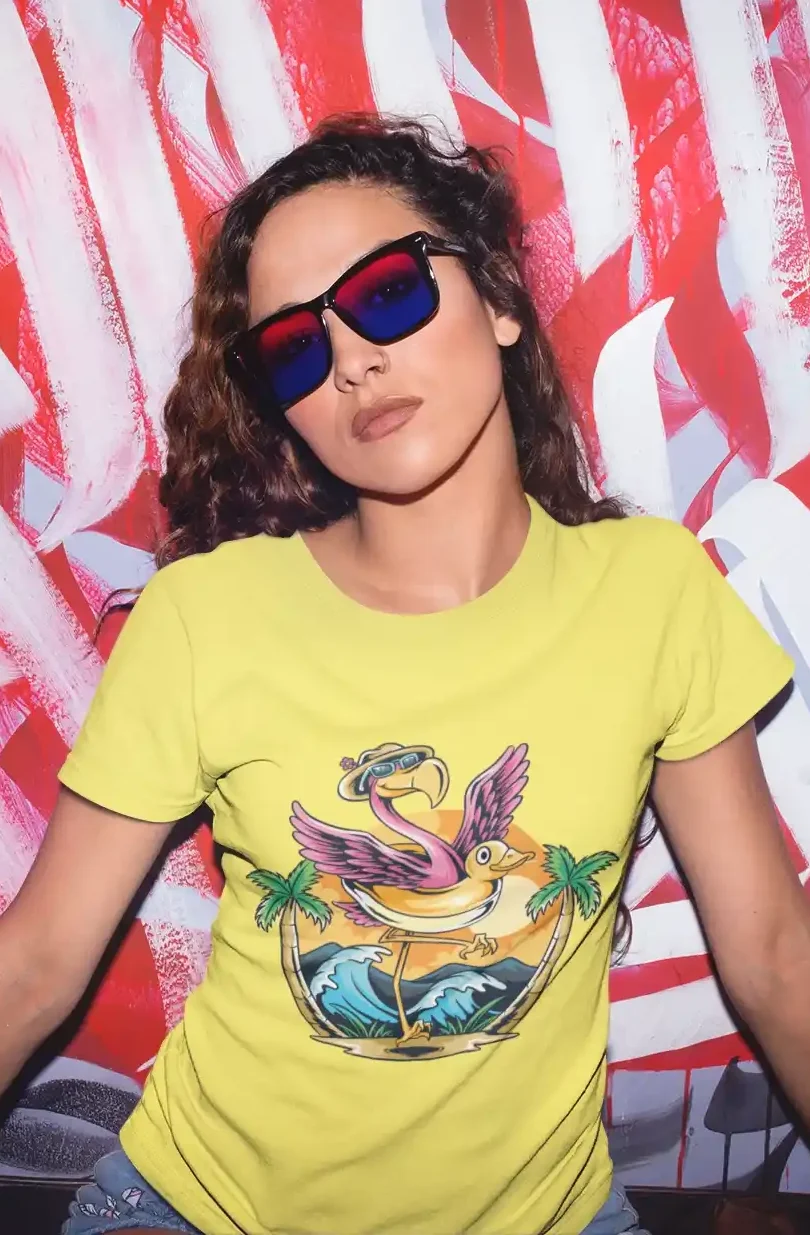 ¡Atrévete a destacar con nuestra camiseta estampada de estilo tropical! Diseñada para quienes buscan comodidad y un toque de frescura, esta camiseta es ideal para cualquier ocasión relajada. Con un estampado único de un ave volando sobre palmeras y olas, ¡serás el centro de todas las miradas!
