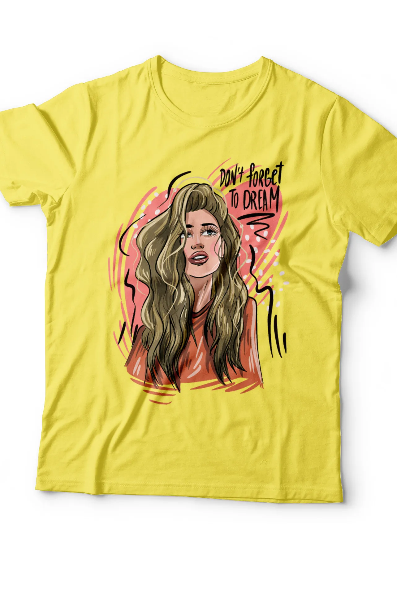 | Estampado | Ilustración de mujer y texto "Don't Forget to Dream" |
