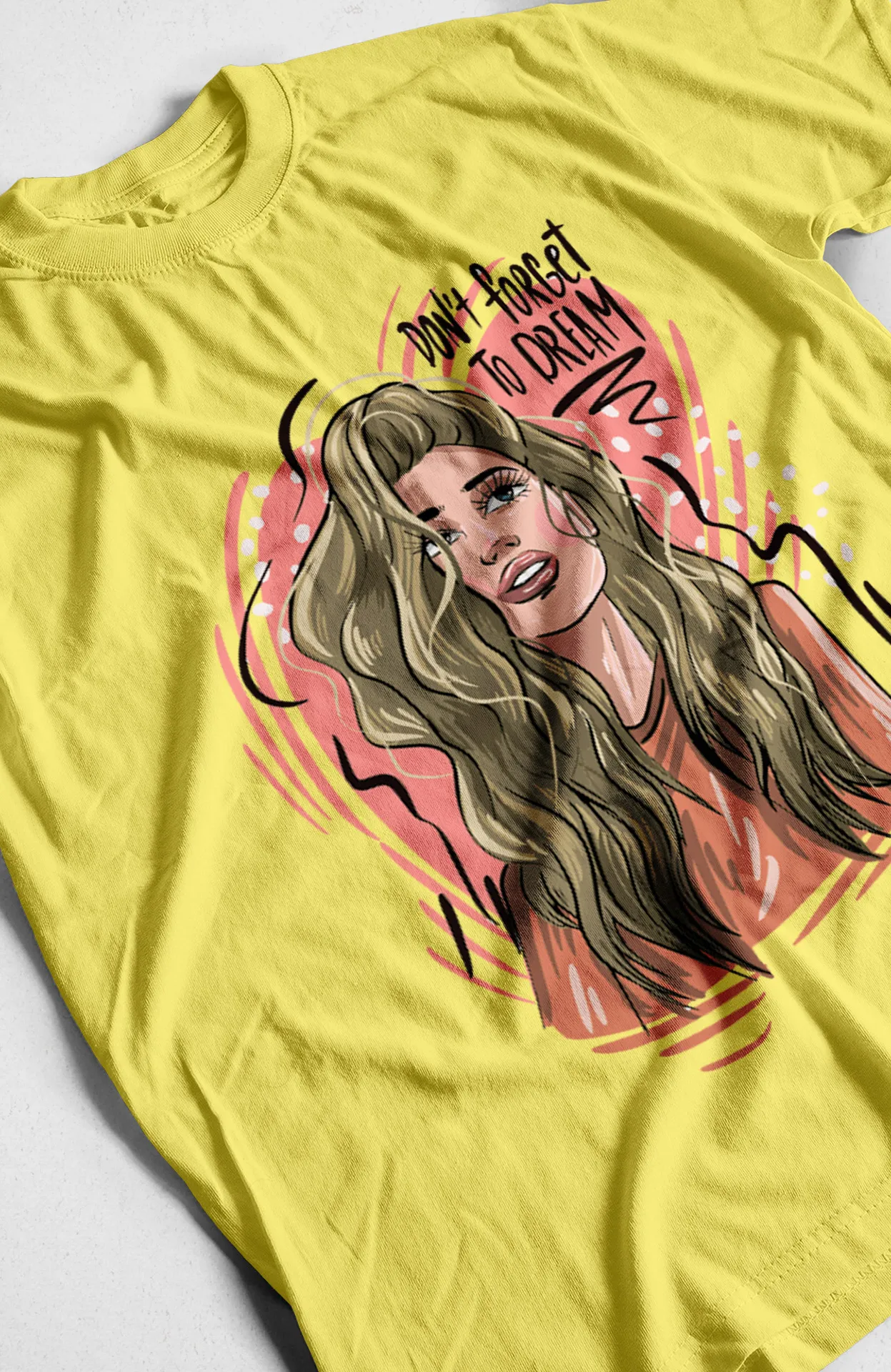 Descubre el poder de un mensaje inspirador con nuestra camiseta "Don't Forget to Dream". Esta prenda es una fusión de arte y moda, diseñada para quienes valoran la creatividad y la autoexpresión. El cautivador gráfico de la mujer pensativa, combinado con la frase motivacional, te invita a reflexionar y a vivir con propósito. Ideal para cualquier ocasión casual, esta camiseta se convertirá en tu favorita para proyectar una actitud positiva y soñadora.