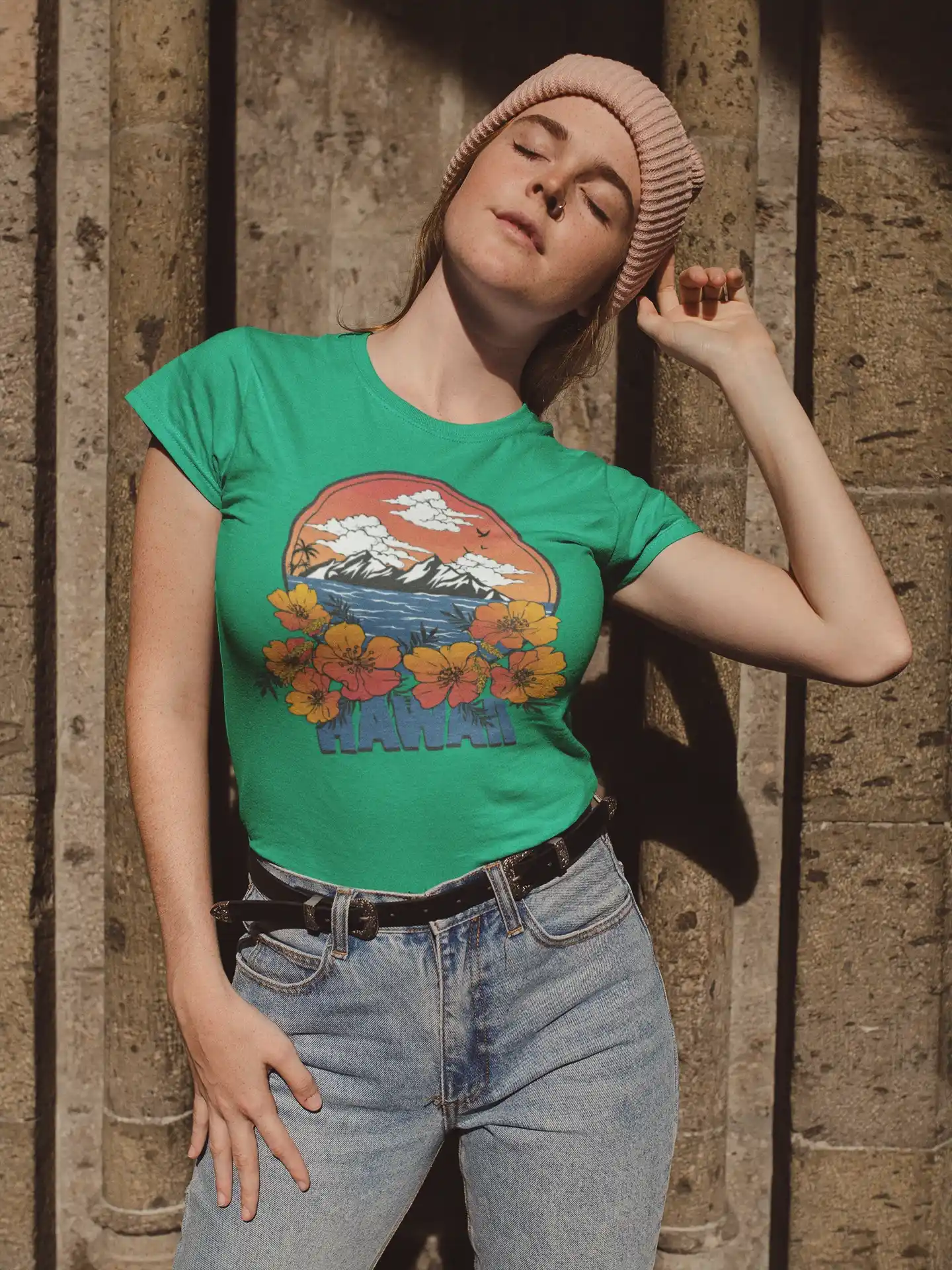¡Añade un toque tropical a tu armario con nuestra camiseta «HAWAII»! Con un diseño único que presenta flores y montañas, esta camiseta de algodón 100% es perfecta para un look veraniego. Su estampado vibrante te hará destacar en cualquier ocasión casual. ¡Combinada con tus jeans o shorts favoritos, es ideal para días soleados y llenos de estilo!