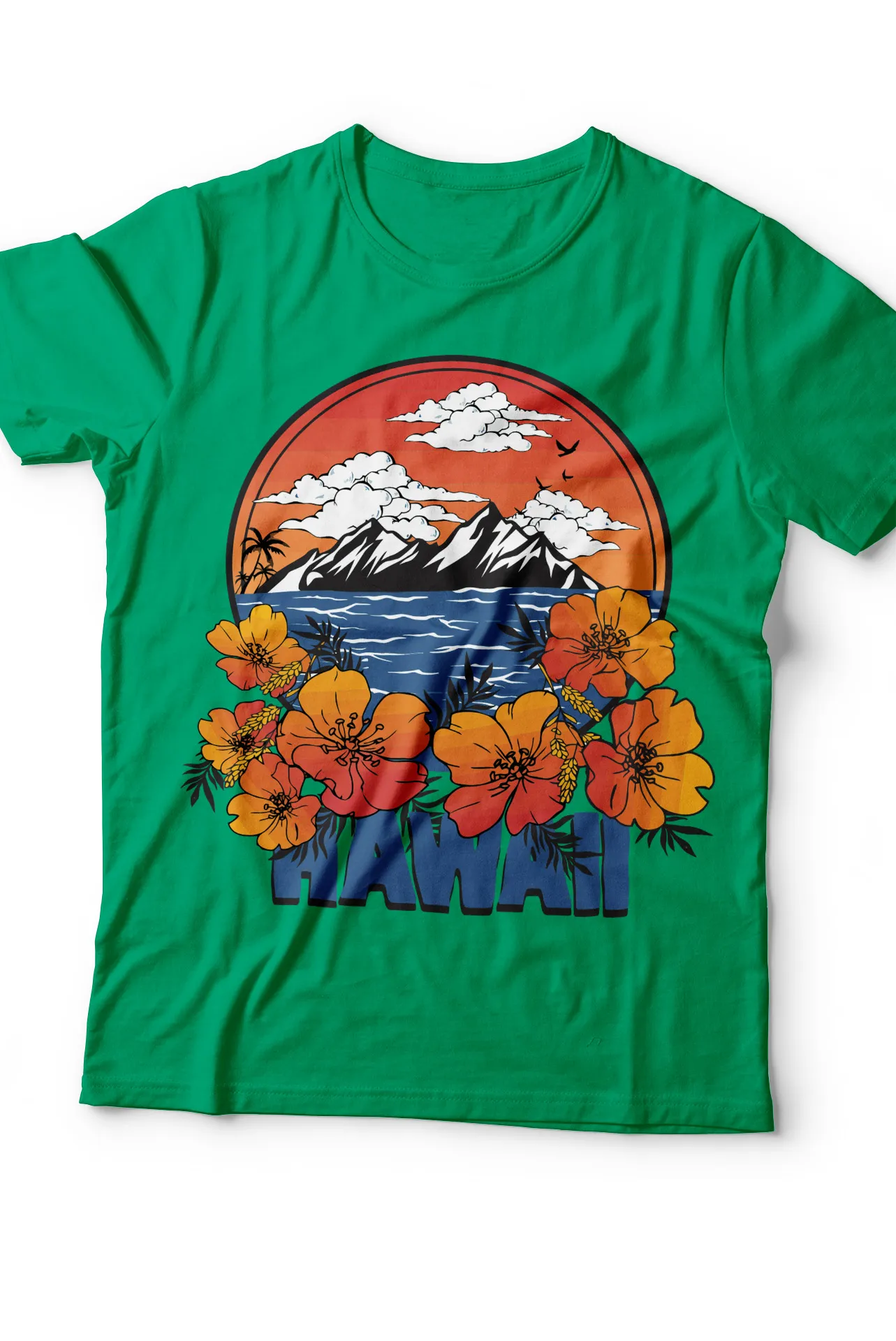 ¡Lleva la vibrante energía tropical a tu armario con nuestra camiseta estampada "HAWAII"! Con un diseño inspirado en los paisajes paradisíacos de Hawái, esta camiseta presenta montañas, flores tropicales y una paleta de colores cálidos, ideal para quienes buscan un estilo relajado y lleno de vida. Perfecta para quienes aman la naturaleza y los colores brillantes.