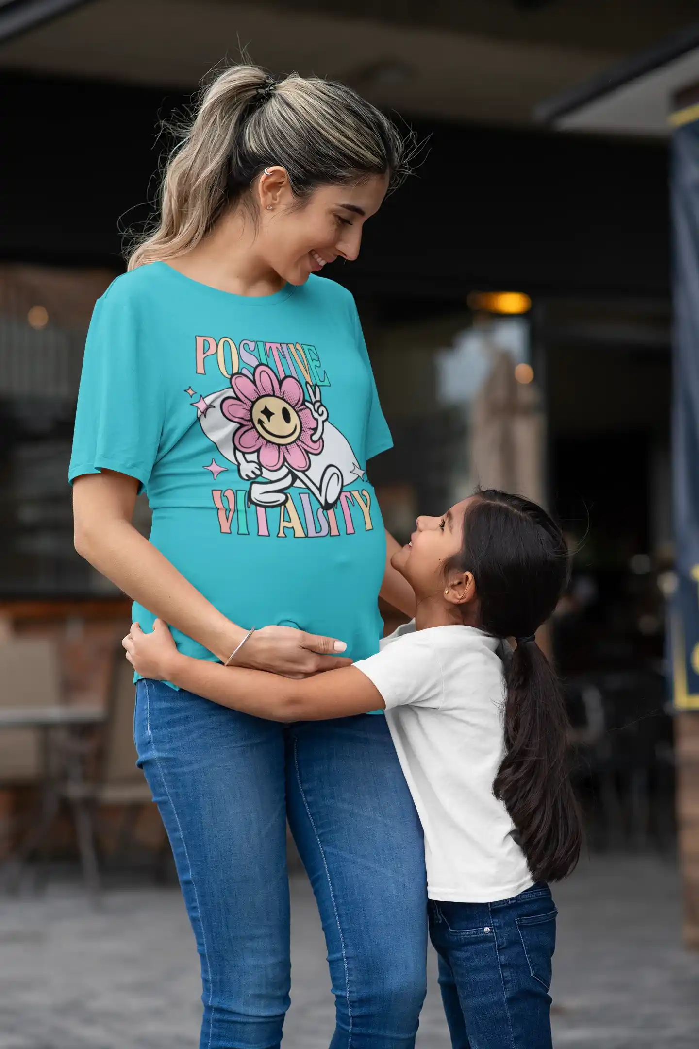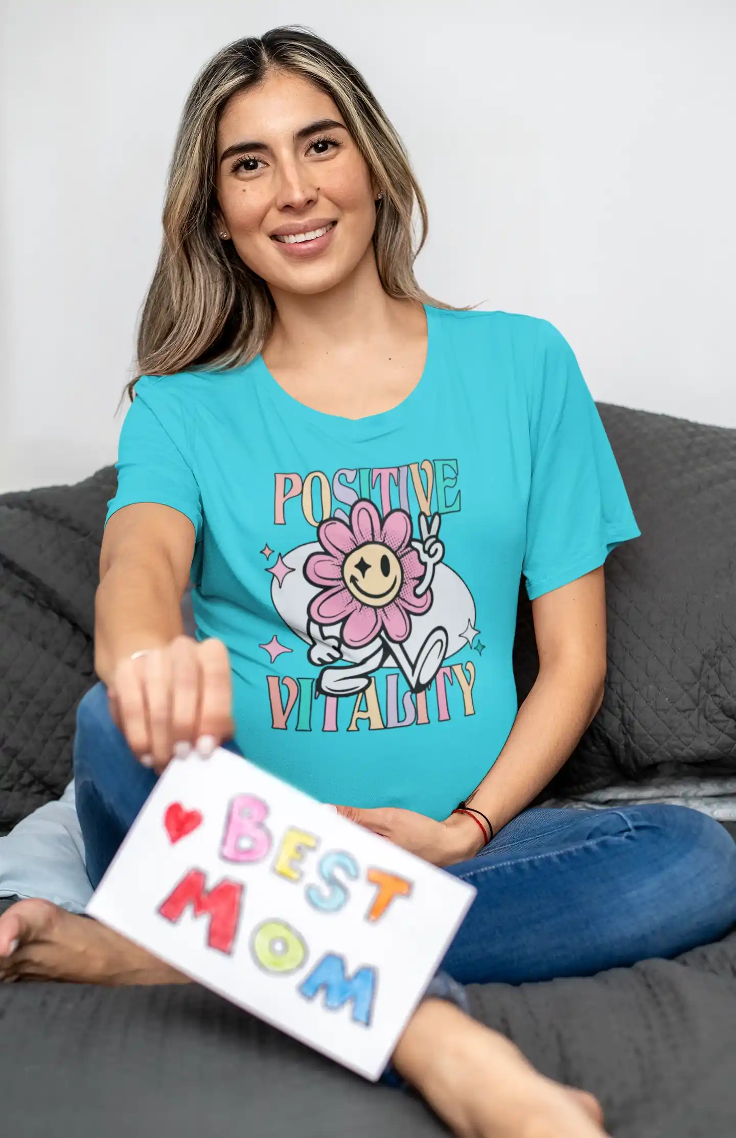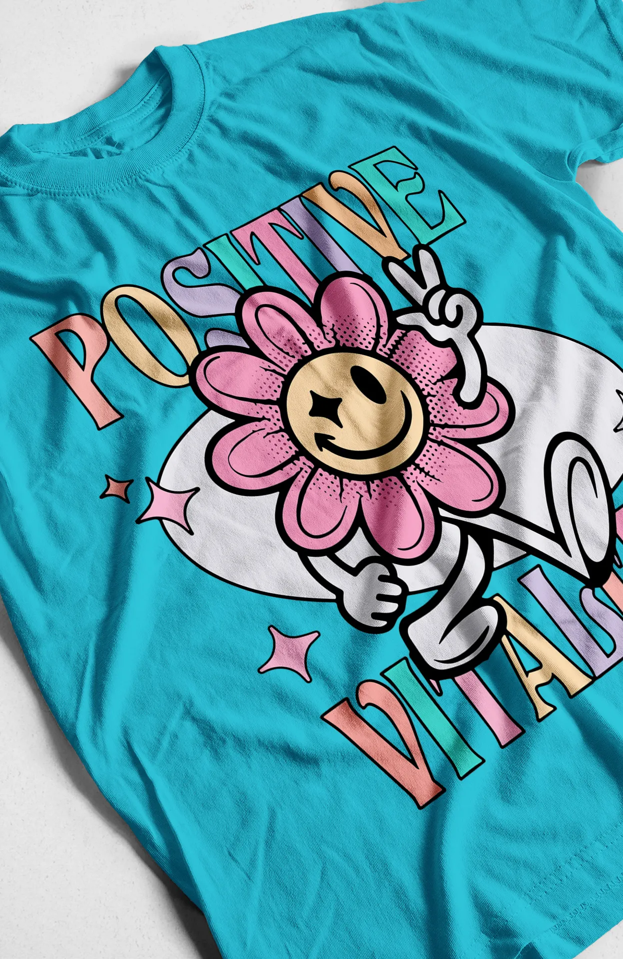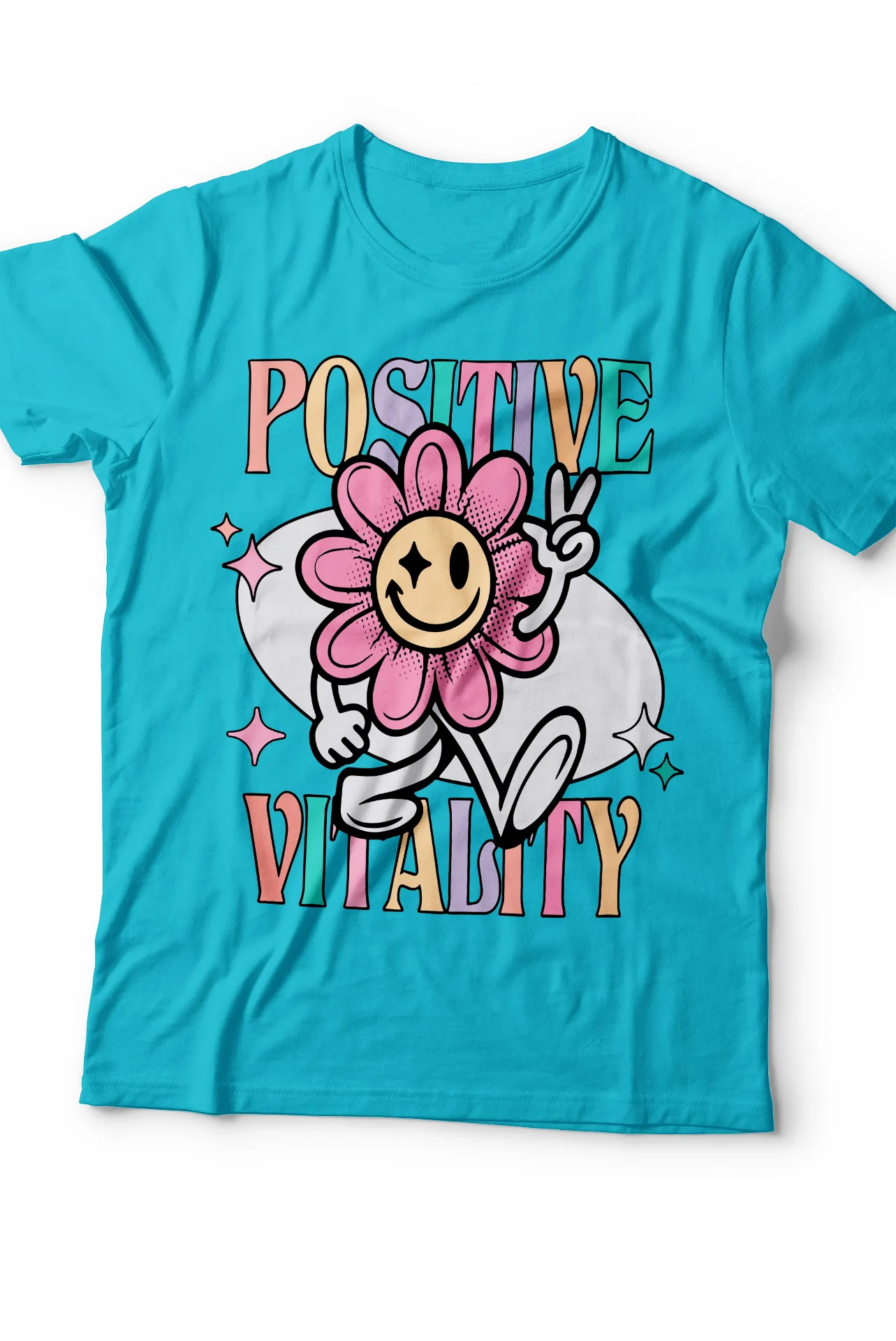 Irradia optimismo y alegría con la camiseta "Positive Vitality". Esta prenda única presenta un diseño de estilo retro que combina una flor sonriente con un mensaje audaz y un fondo de estrellas y líneas que le dan un toque de fantasía. Es más que una simple camiseta; es un recordatorio de que la actitud lo es todo. Ideal para quienes buscan un estilo que refleje su personalidad alegre y su deseo de dejar una impresión duradera. Sin duda, una camiseta que te hará sentir bien por dentro y por fuera.