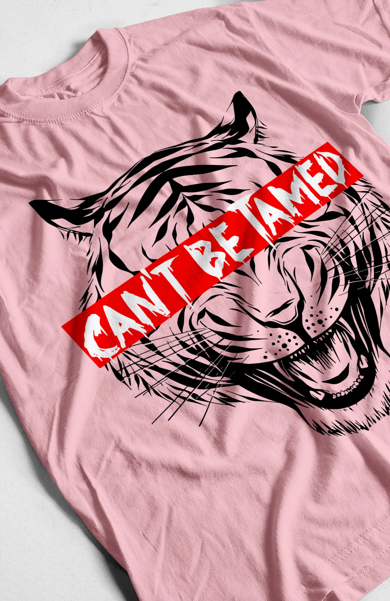 A diferencia de las camisetas con diseños simples, la "Can't be Tamed" es una obra de arte portátil que fusiona un estilo urbano con un mensaje profundo. El diseño intrigante del tigre y el mensaje audaz la convierten en una pieza de conversación y un artículo indispensable para los amantes del estilo urbano que buscan algo diferente y con un toque de humor.