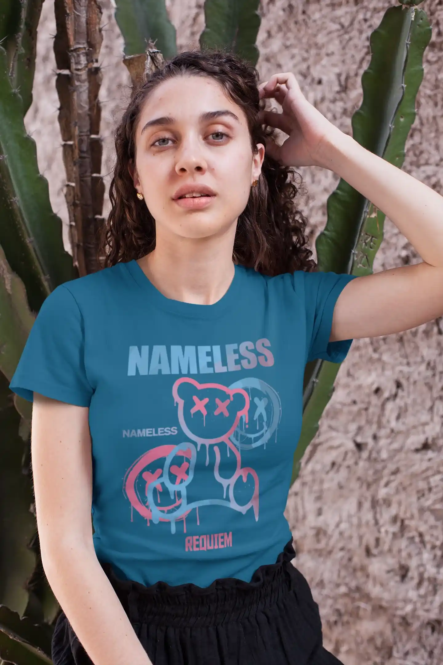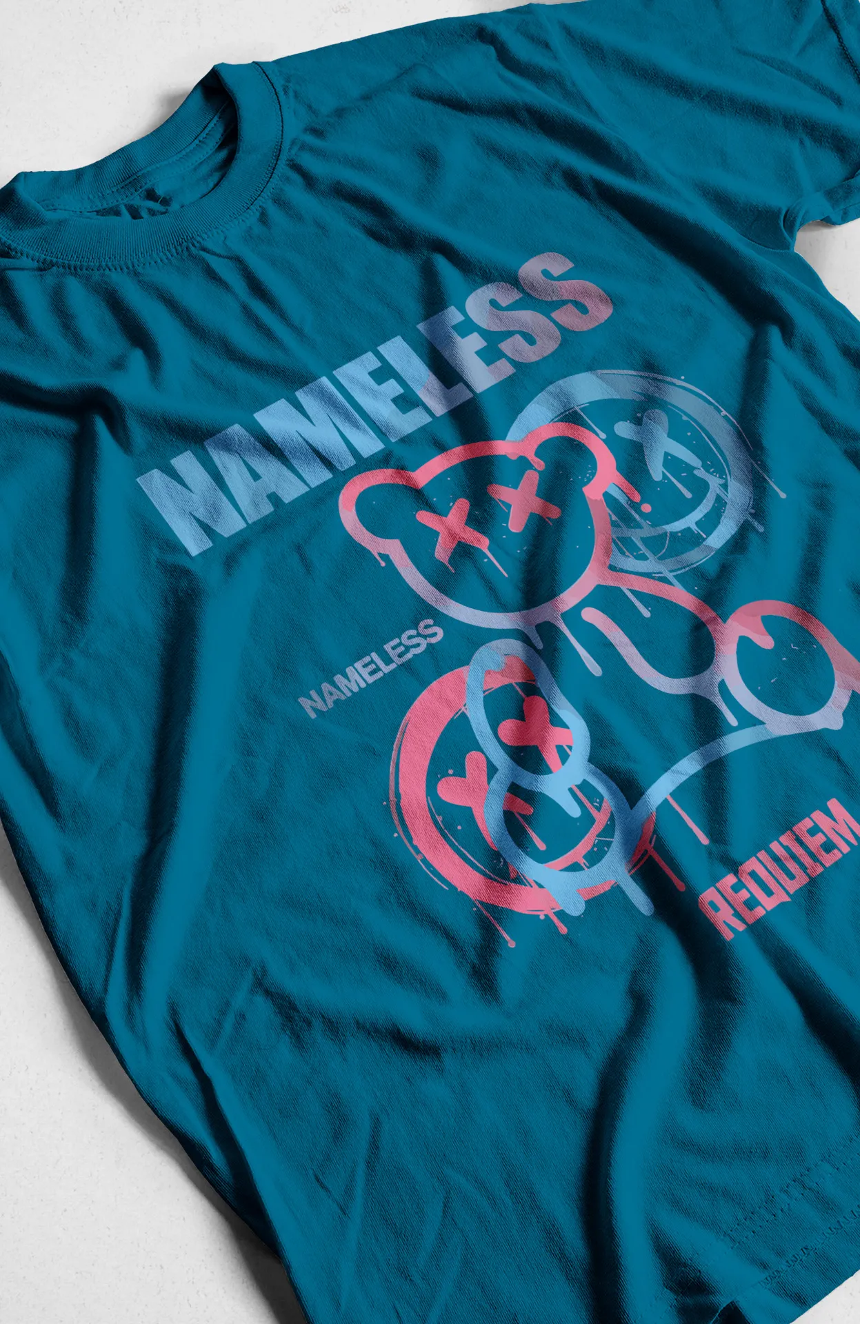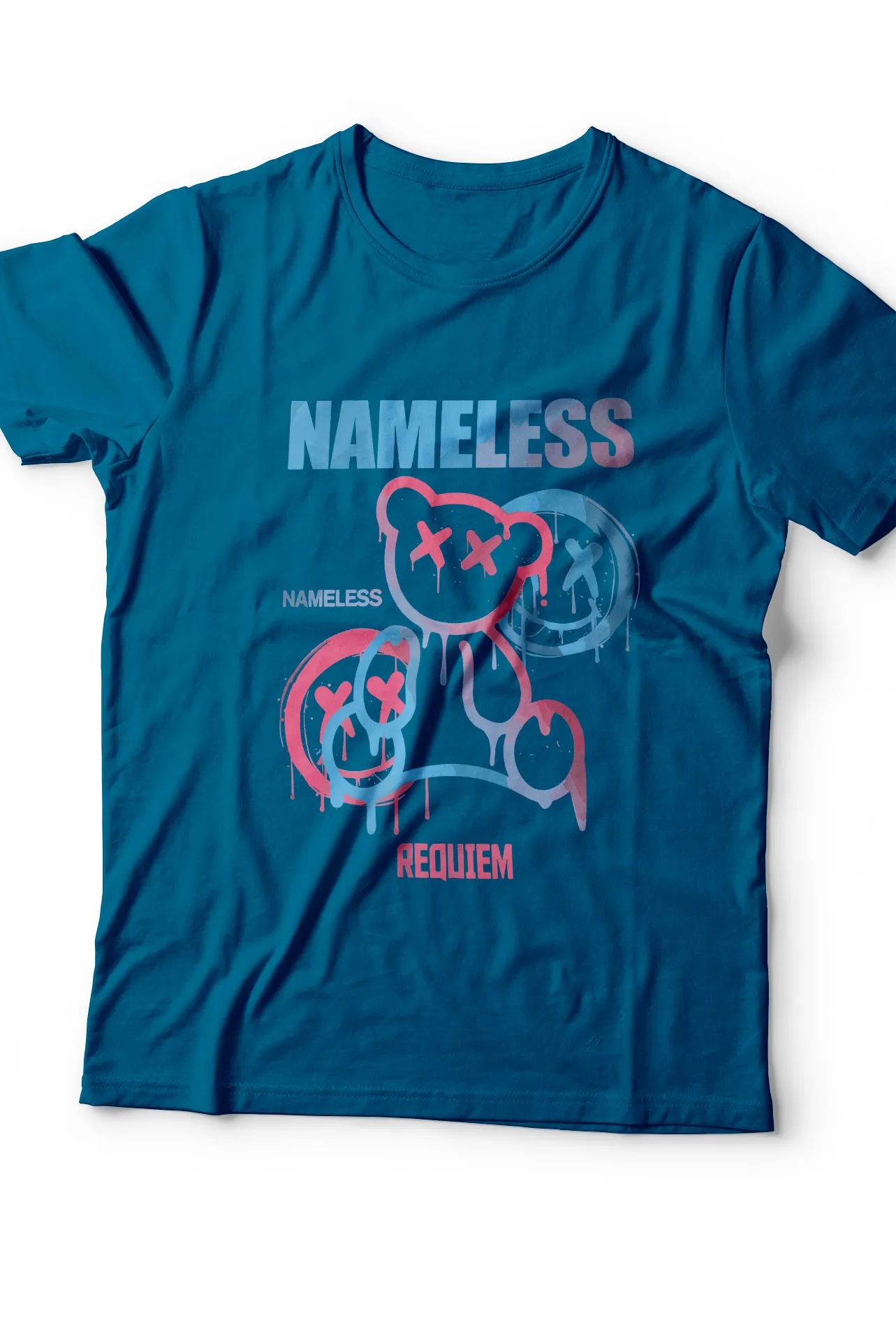 Lleva un diseño que te hará pensar y destacar con la camiseta "Nameless Requiem". Esta prenda única presenta un diseño de estilo urbano que combina un oso de peluche con los ojos en forma de "X" y la palabra "Nameless", creando una estética intrigante y misteriosa. Es más que una simple camiseta; es un símbolo de un espíritu libre y una mente abierta. Ideal para quienes buscan una pieza que refleje su personalidad creativa y su deseo de cuestionar la realidad. Sin duda, una camiseta que te hará sentir bien por dentro y por fuera.