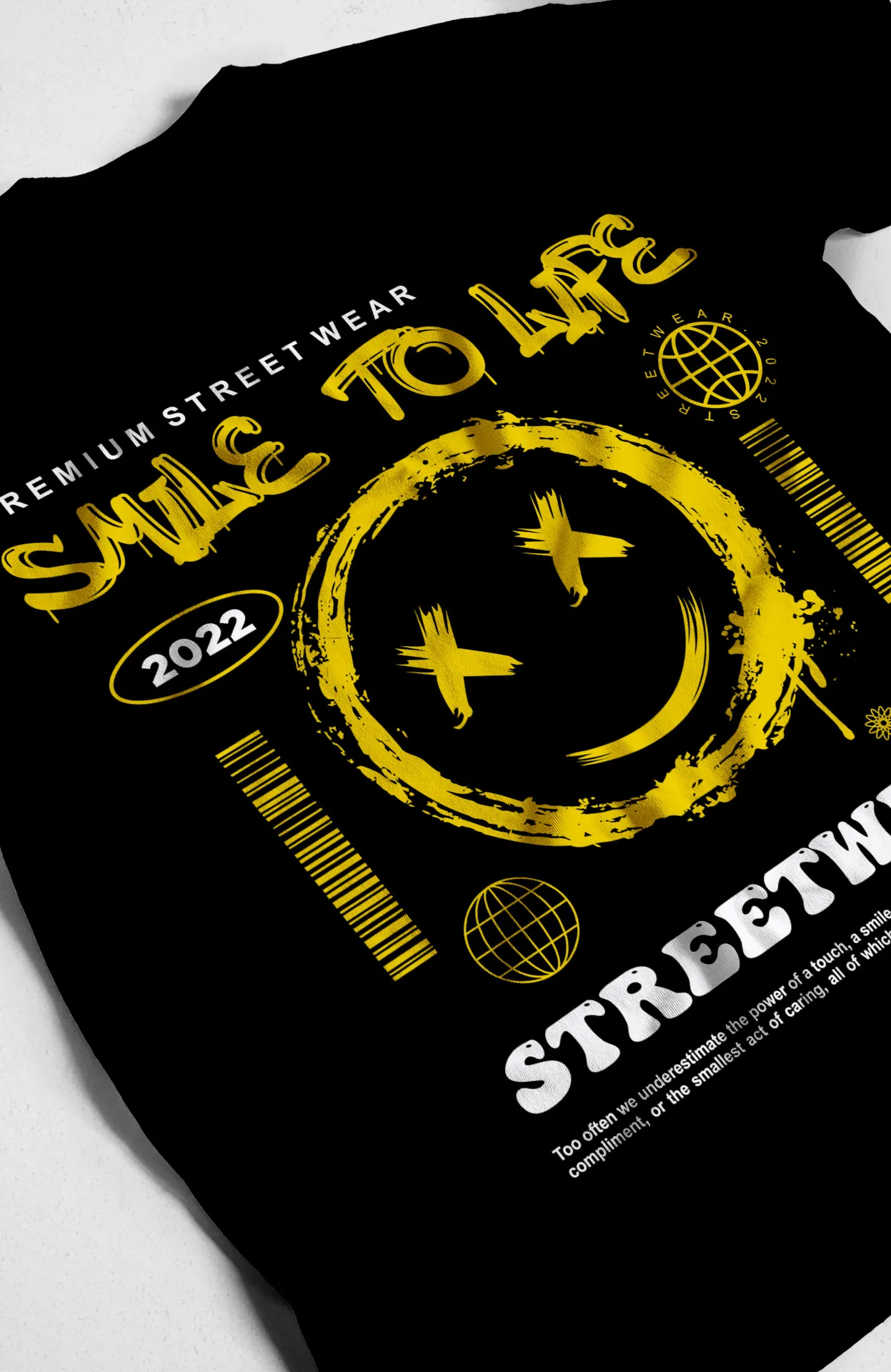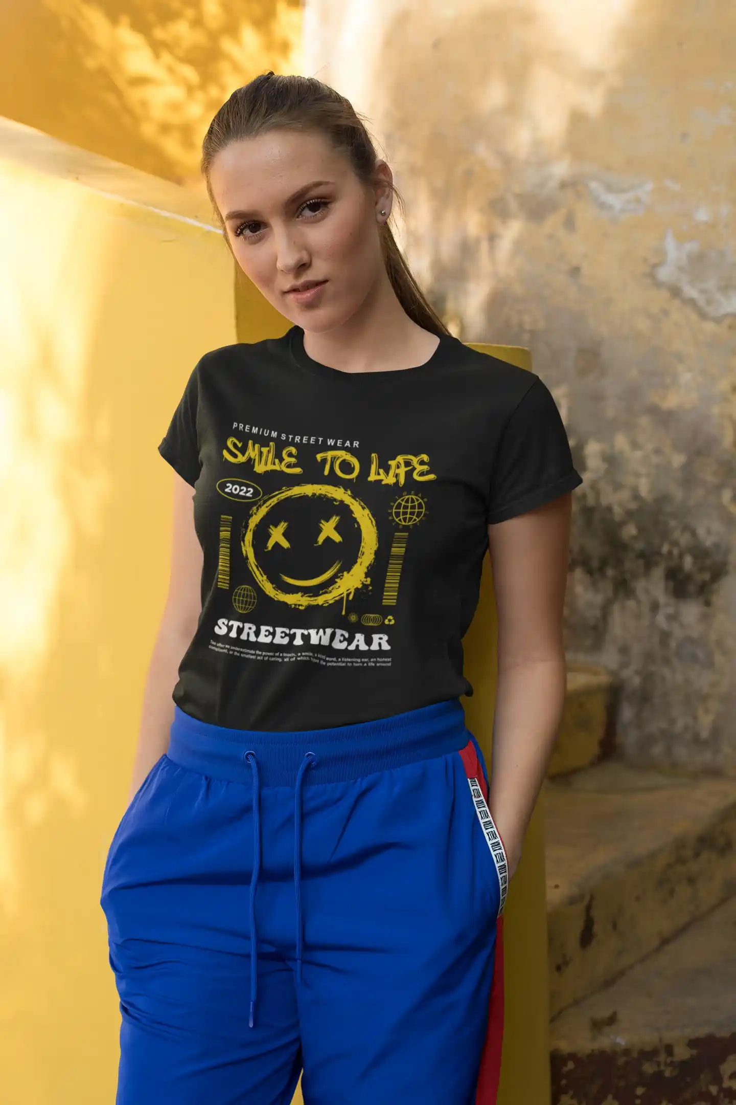 Demuestra tu actitud positiva y tu sentido del estilo con la camiseta "Smile to Life". Esta pieza única presenta un diseño de estilo urbano que combina un emoticono sonriente con ojos en forma de "X", un fondo de salpicadura de pintura y la frase "Smile to life" en una tipografía audaz. Es más que una simple prenda; es un recordatorio de que la vida está para sonreírle. Ideal para quienes buscan un estilo que refleje su personalidad alegre y su deseo de dejar una impresión duradera. Sin duda, una camiseta que te hará sentir bien por dentro y por fuera.