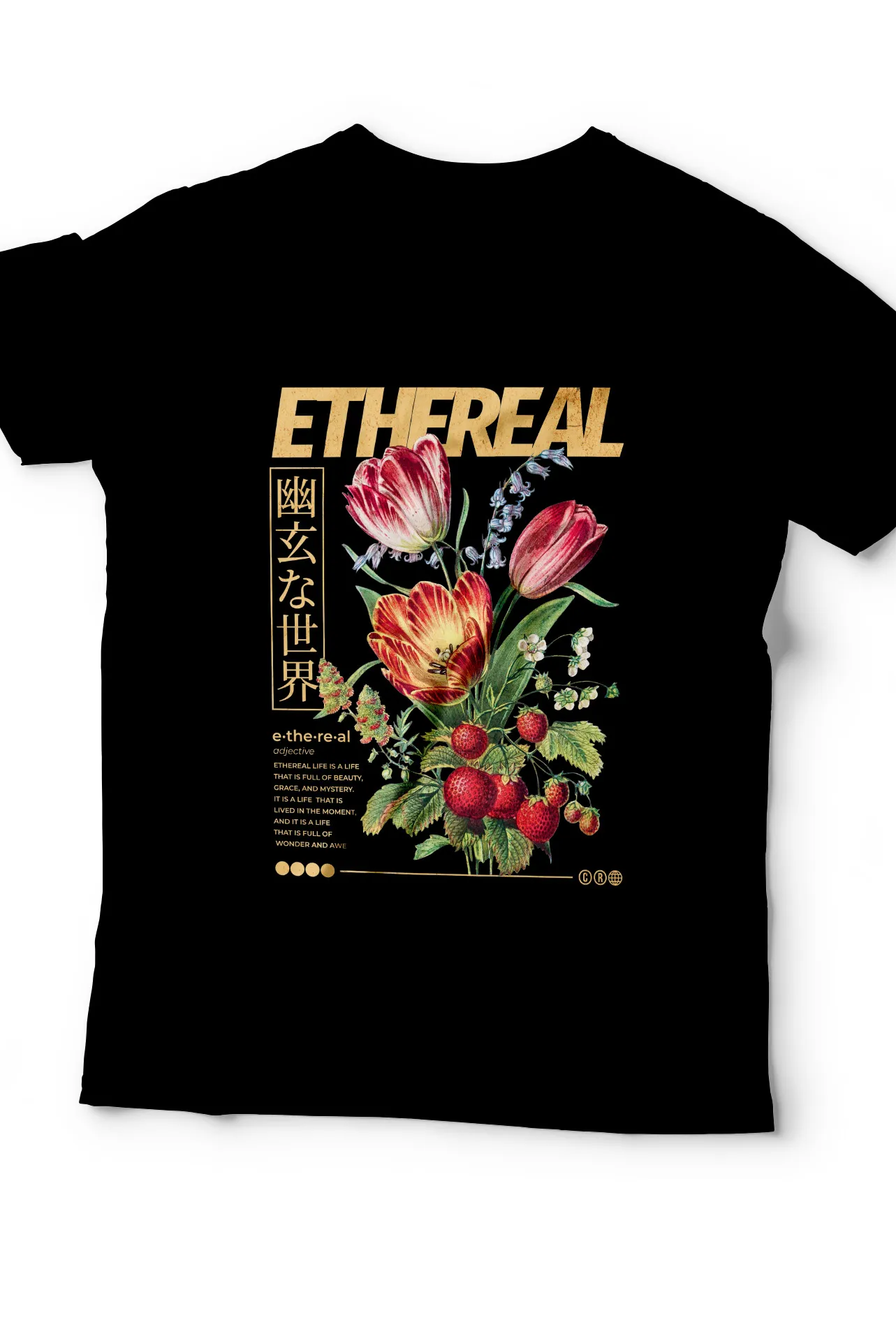 La camiseta "Ethereal" es más que una simple prenda; es una obra de arte que te transporta a un mundo de belleza y serenidad. Con un diseño que combina la delicadeza de las flores y fresas con la tipografía audaz "Ethereal", esta prenda es perfecta para quienes aprecian la belleza en los detalles y buscan un estilo que inspire. Su gráfico intrincado y simbólico te asegura destacar, proyectando una imagen de creatividad y estilo. Es la elección perfecta para quienes buscan un look que no solo se vea bien, sino que también proyecte una imagen de valentía y estilo. Lleva contigo esta pieza única que te recordará el poder de la belleza en la vida diaria.