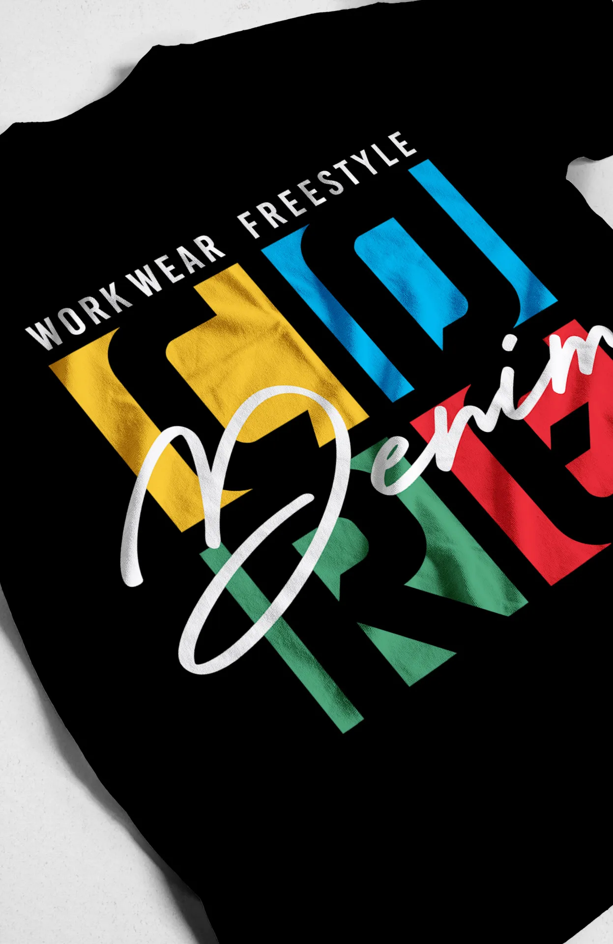 La camiseta "FREESTYLE DENIM" mezcla moda urbana y casual en una sola prenda. Su diseño con bloques de colores vivos (amarillo, azul, verde y rojo) y tipografía moderna transmite energía, creatividad y movimiento. Perfecta para quienes tienen un espíritu libre y una actitud relajada.