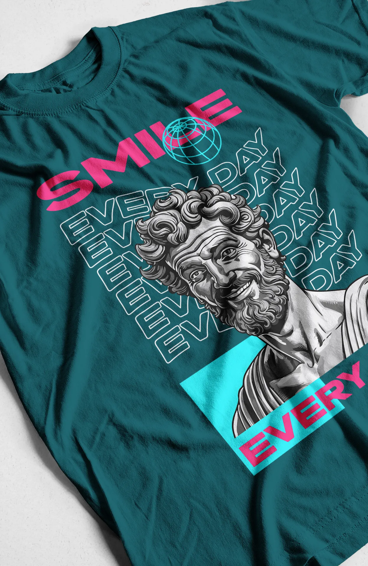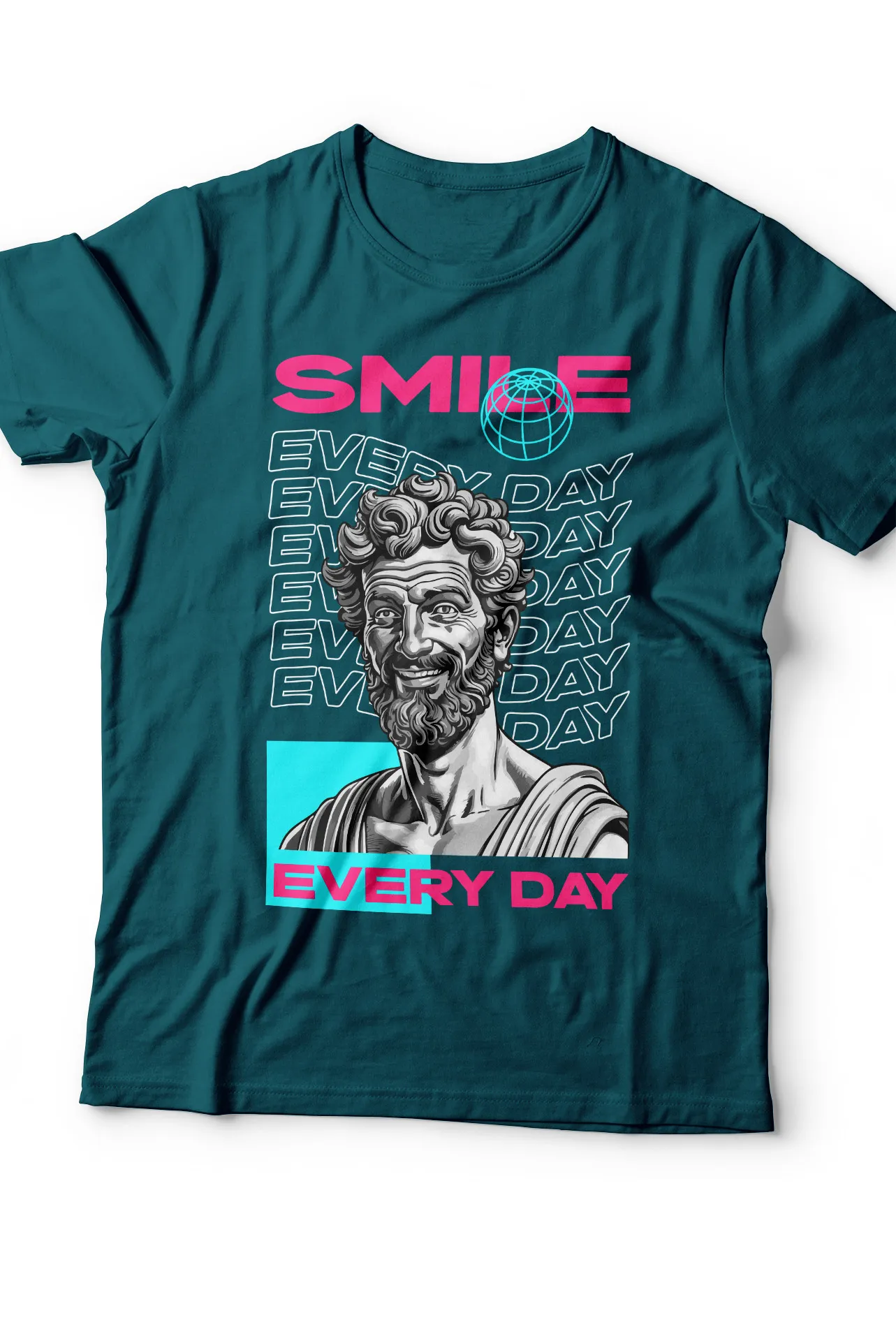 La camiseta "Smile Every Day" es una pieza de arte que fusiona la estética clásica con un mensaje de positividad. Con un diseño que muestra una estatua antigua con una sonrisa contagiosa, esta prenda te invita a llevar la alegría y el optimismo a donde quiera que vayas. Es la elección perfecta para quienes buscan un look que no solo se ve bien, sino que también tiene un mensaje inspirador. Lleva contigo esta pieza única que te recordará el poder de una sonrisa.