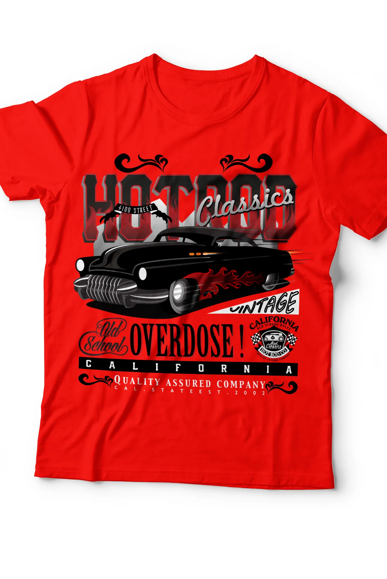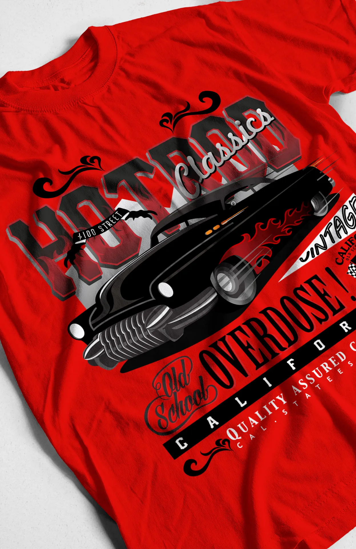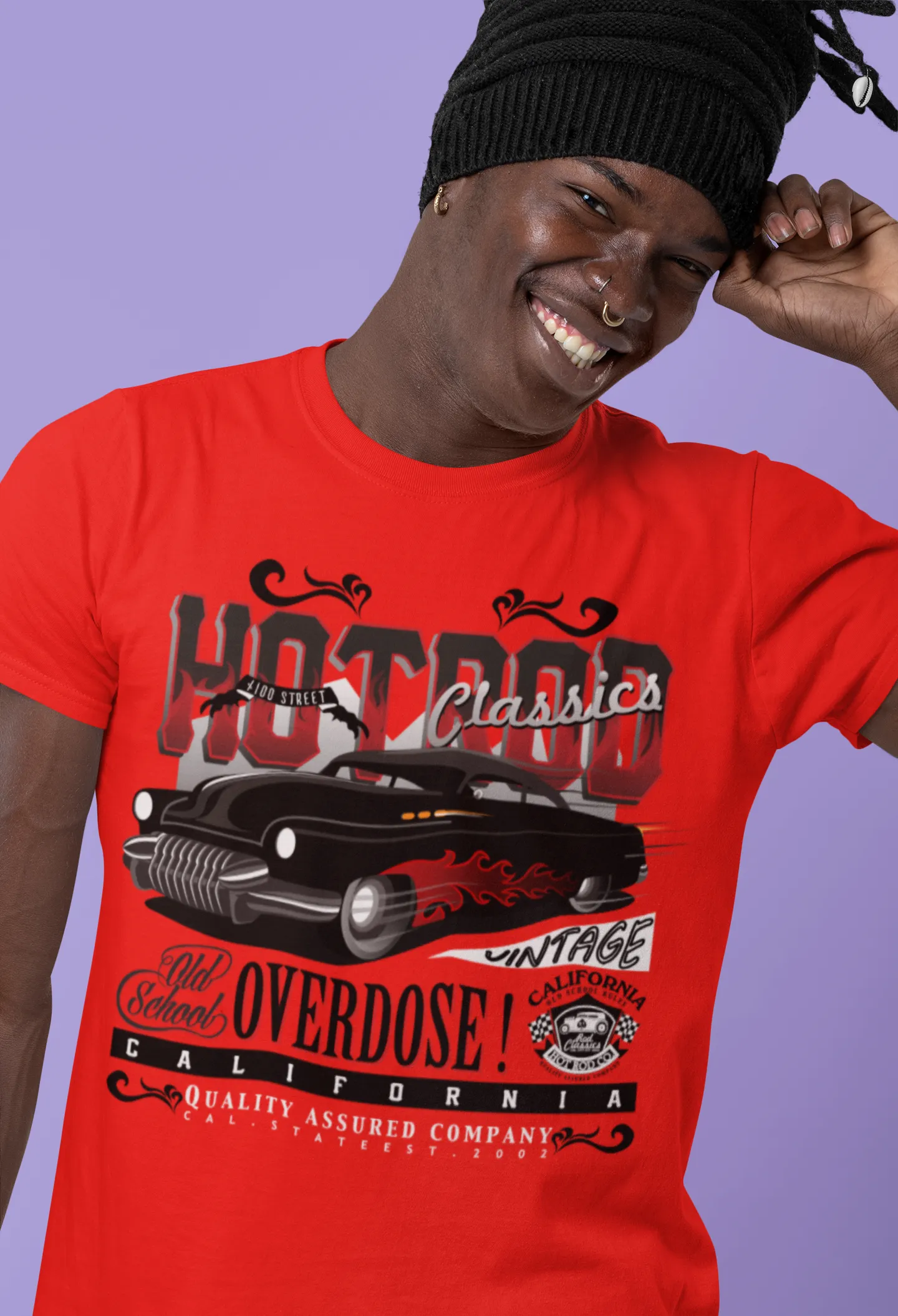 Lo que hace única a esta camiseta es la audacia de su concepto. A diferencia de los estampados comunes de autos, este diseño tiene un carácter que combina el estilo visual con un mensaje de autenticidad y rebeldía. La superposición de las palabras "HOT ROD" y "OLD SCHOOL OVERDOSE" con el estilo retro crea una narrativa visual que la convierte en una prenda distintiva que no pasará desapercibida. Es ideal para quienes buscan ropa que no solo se vea bien, sino que también refleje su personalidad única y sin complejos.