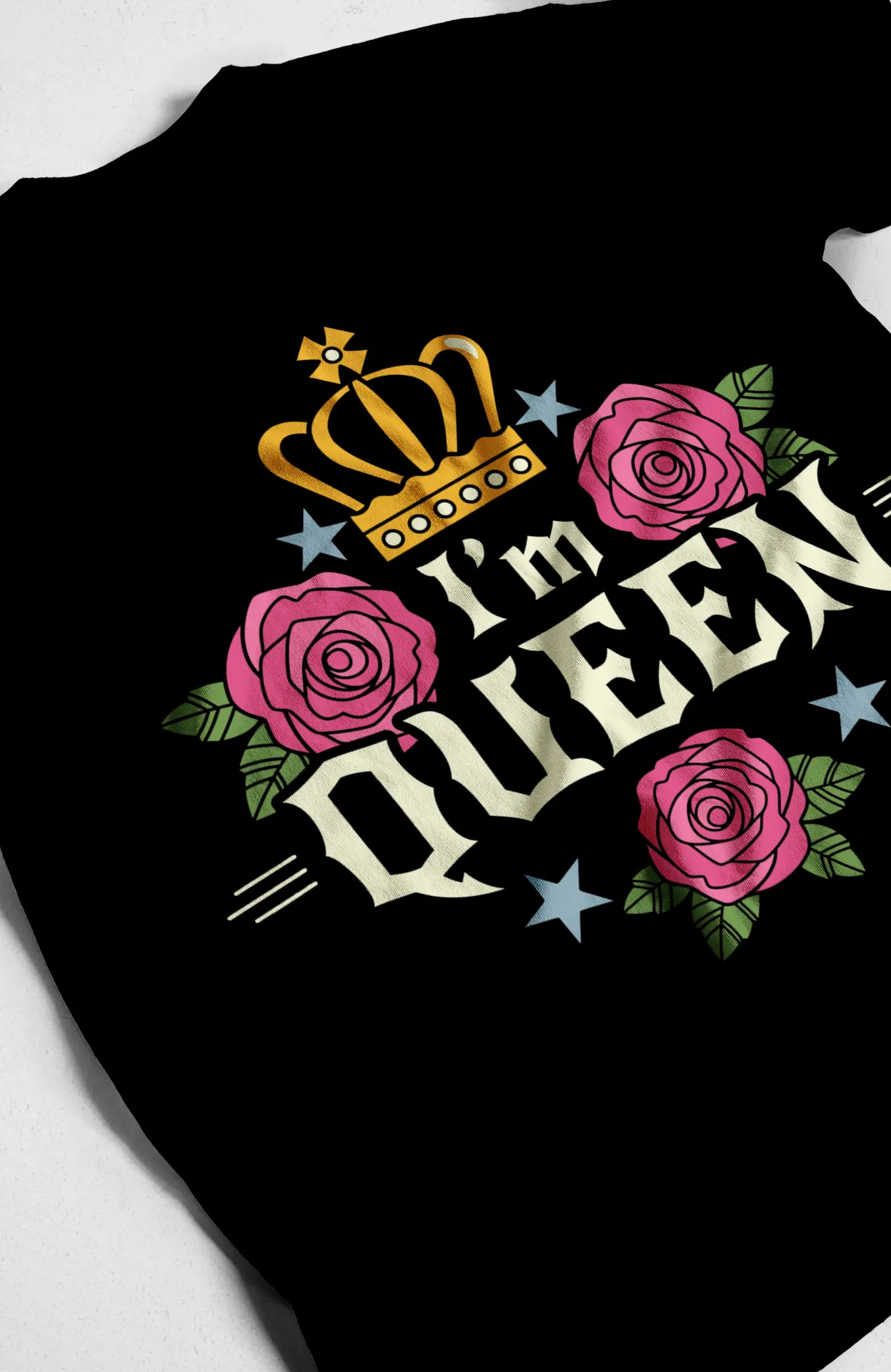 ¿Por qué conformarte con una camiseta común? Nuestro diseño "I'm a Queen" no es solo una prenda, es una declaración de empoderamiento. Destaca por su mensaje claro y su diseño estético, creado para mujeres que valoran la autoexpresión y la calidad. Es el regalo perfecto para celebrar la fuerza de una amiga o para recordarte a ti misma el poder que llevas dentro.
