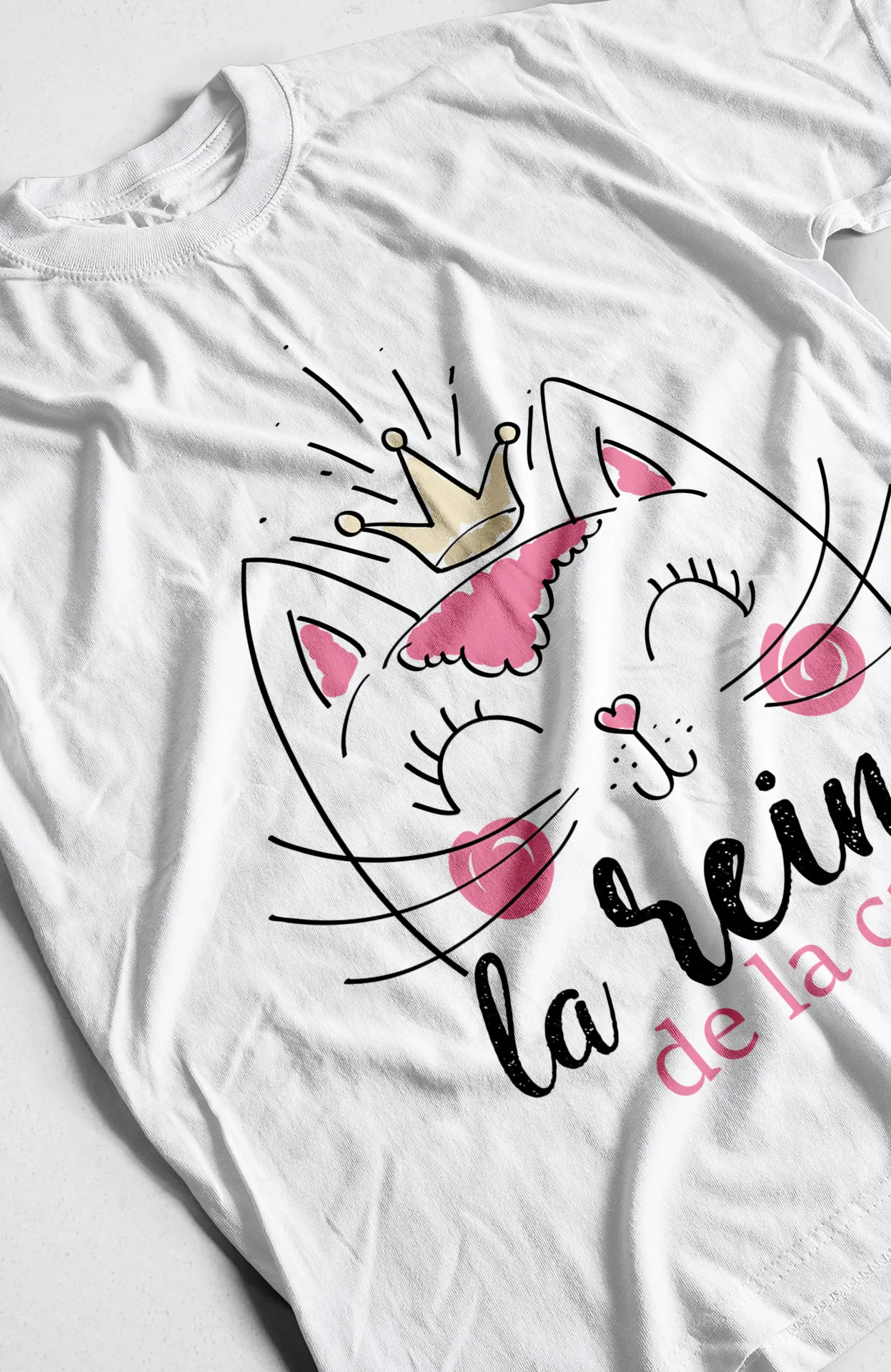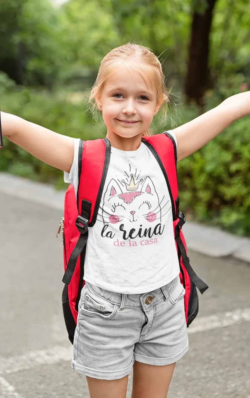 Deja que la pequeña de casa se robe todas las miradas con esta adorable camiseta infantil con el mensaje “La Reina de la Casa” y un encantador diseño de gatita coronada. Ideal para niñas seguras, dulces y con actitud.