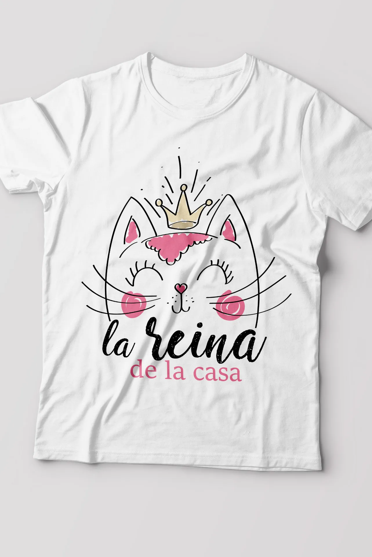- Estilo gráfico: Ilustración de gato con corona y texto “La Reina de la Casa”