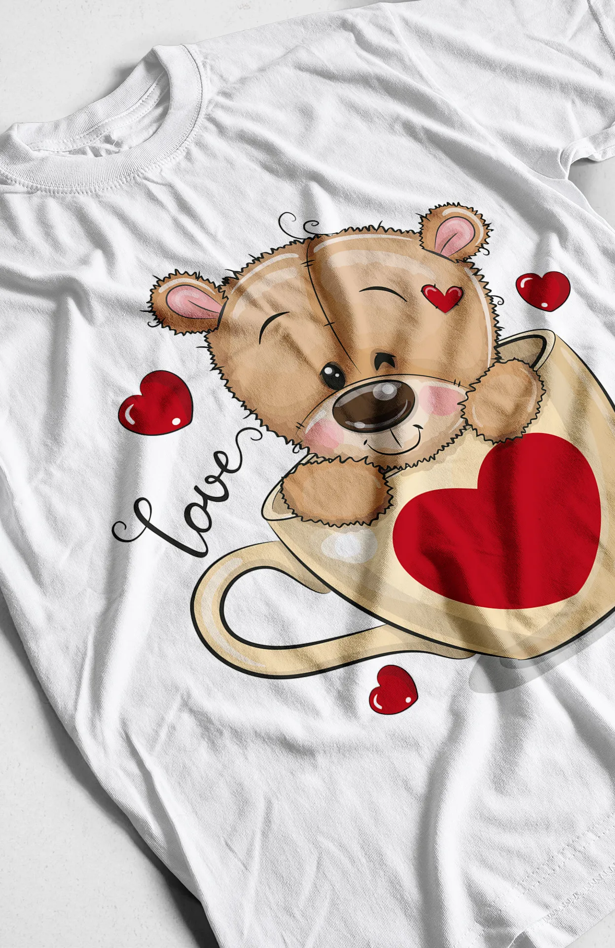 Nuestra camiseta **'Love Bears'** es una explosión de ternura y dulzura. Diseñada para capturar la esencia del cariño, el estampado presenta a un adorable oso de peluche dentro de una taza, con corazones a su alrededor, creando una escena llena de encanto. Es la camiseta perfecta para los niños que adoran los peluches y quieren llevar un recordatorio constante de la importancia del amor y la amistad.
