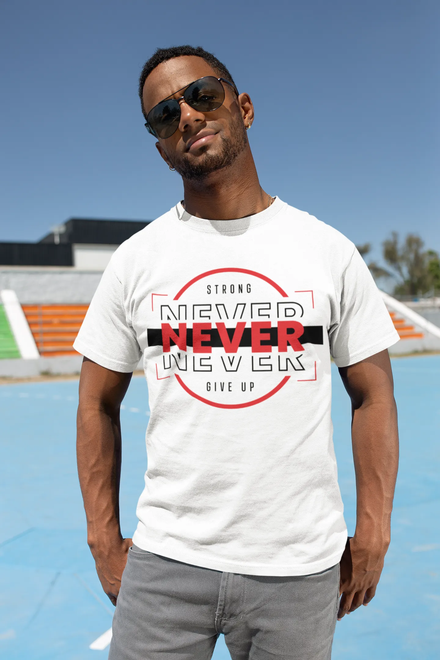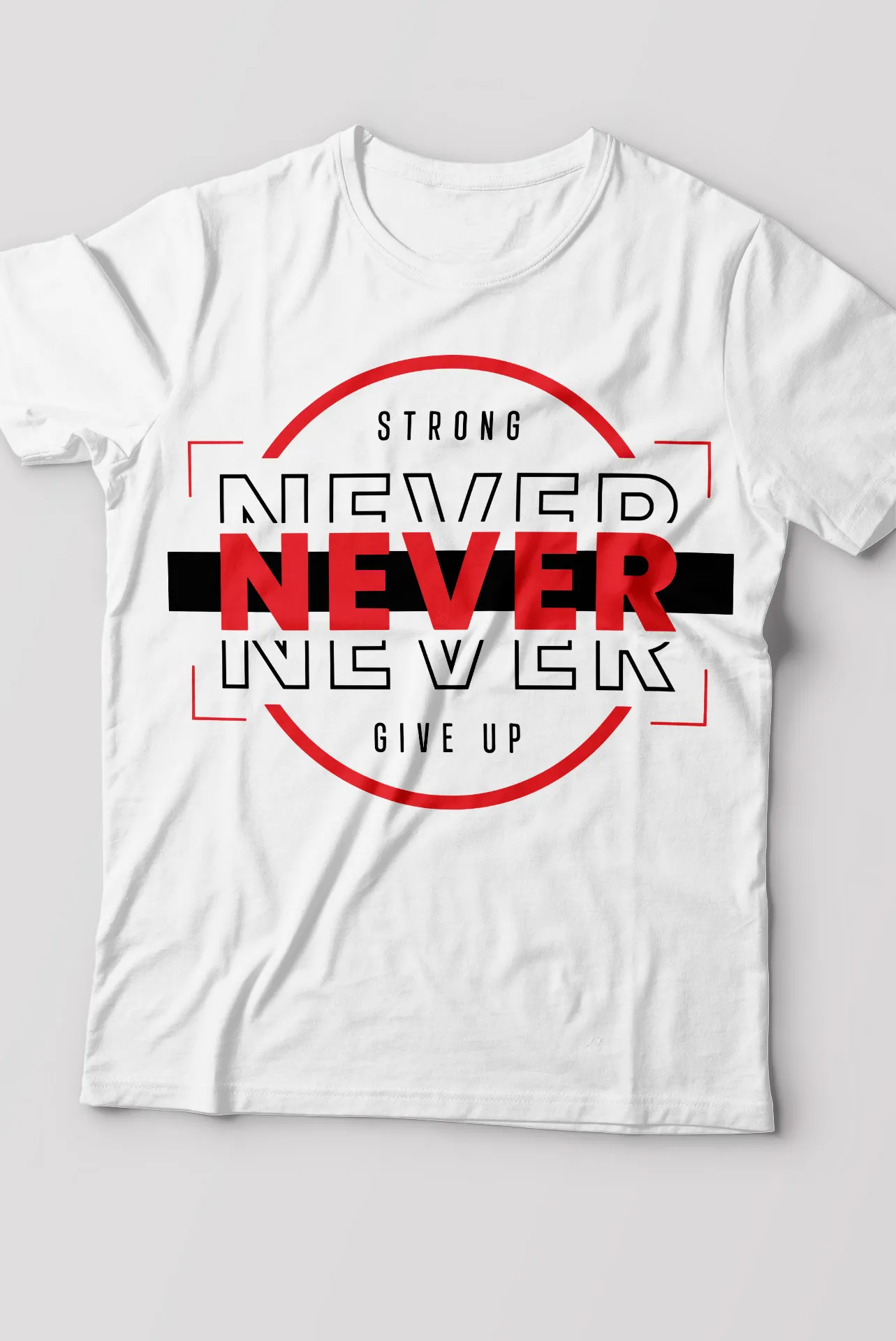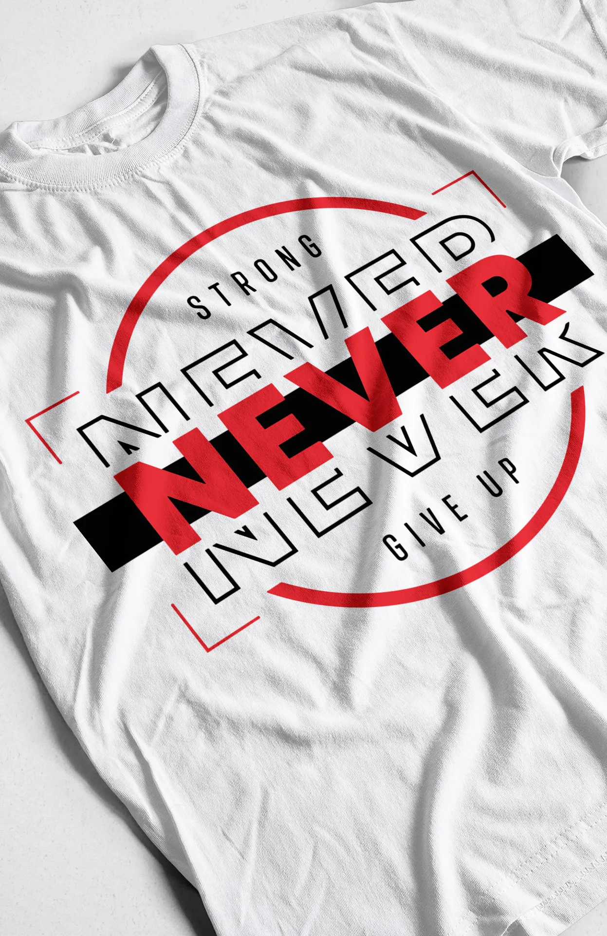 Marca la diferencia con la camiseta "Never Give Up". Esta prenda va más allá de un simple diseño; es un manifiesto de tu compromiso con el crecimiento personal y la superación. La tipografía de la palabra "NEVER" y "NEVER GIVE UP" está compuesta por bloques y patrones que evocan una construcción sólida y un espíritu inquebrantable. El mensaje "Strong" y "Never Give Up" complementa el diseño, creando una pieza que fusiona la moda con una mentalidad ganadora. Con esta camiseta, llevarás un símbolo de tu propia resiliencia.