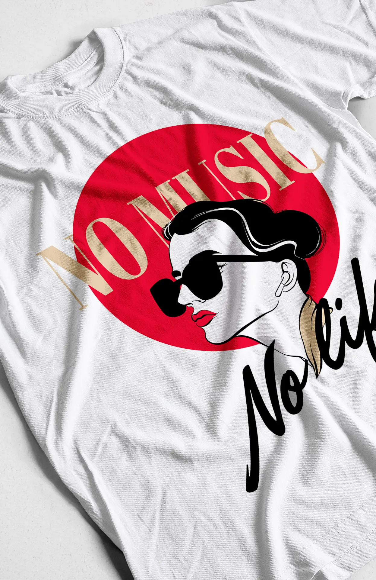 Lleva tu amor por la música a otro nivel con nuestra camiseta "No Music No Life". Esta prenda es una declaración de pasión y estilo, con un diseño que presenta un perfil de una mujer con audífonos y la frase audaz "No Music No Life" en una tipografía elegante. Es la elección perfecta para quienes creen que la música es el motor de la vida y que la moda es una forma de expresión personal. ¡Póntela y deja que el mundo sepa que la música es tu vida!