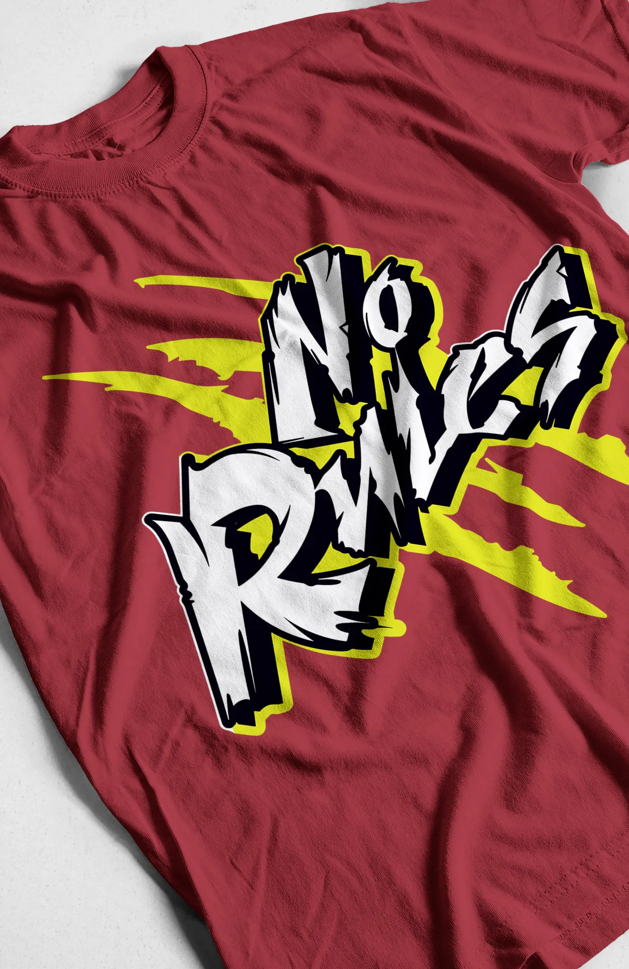 | Diseño | Gráfico de la palabra "NO RULES" con tipografía de graffiti y marcas de garras |